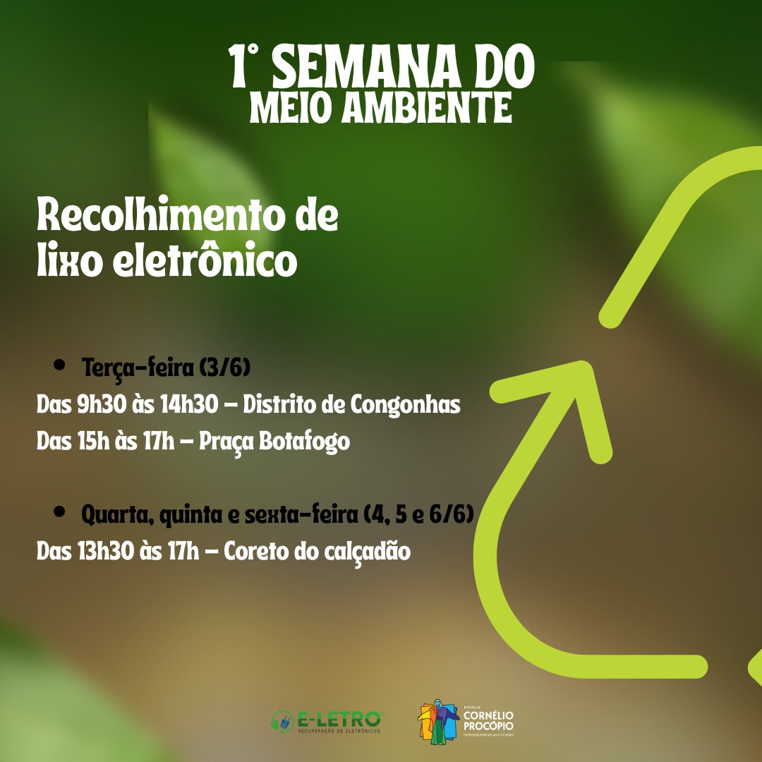 Semana do Meio Ambiente terá recolhimento de lixo eletrônico em Cornélio Procópio