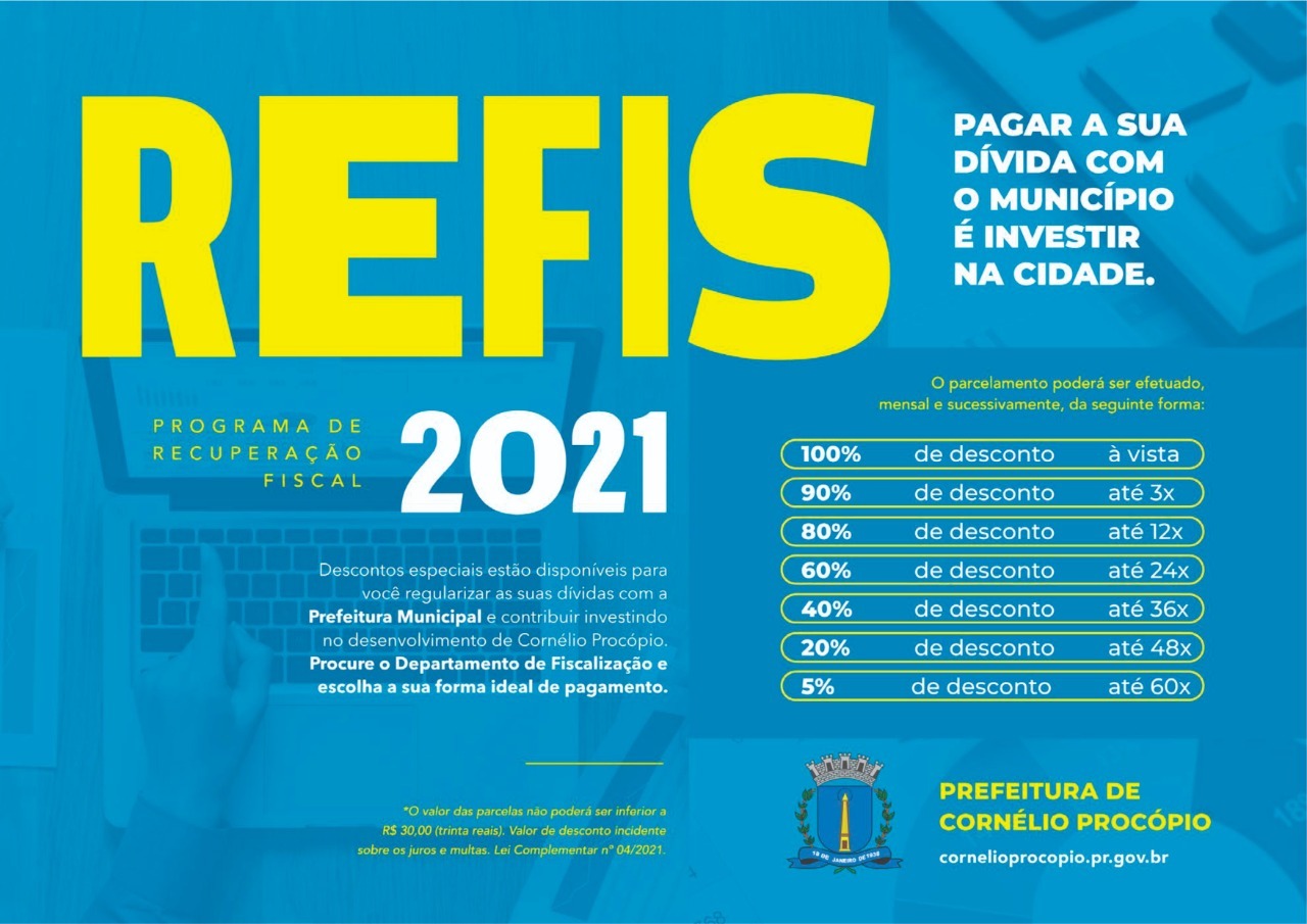 Refis 2021: Em Cornélio Procópio, prazo para pagamento de débitos vai até o meio de novembro