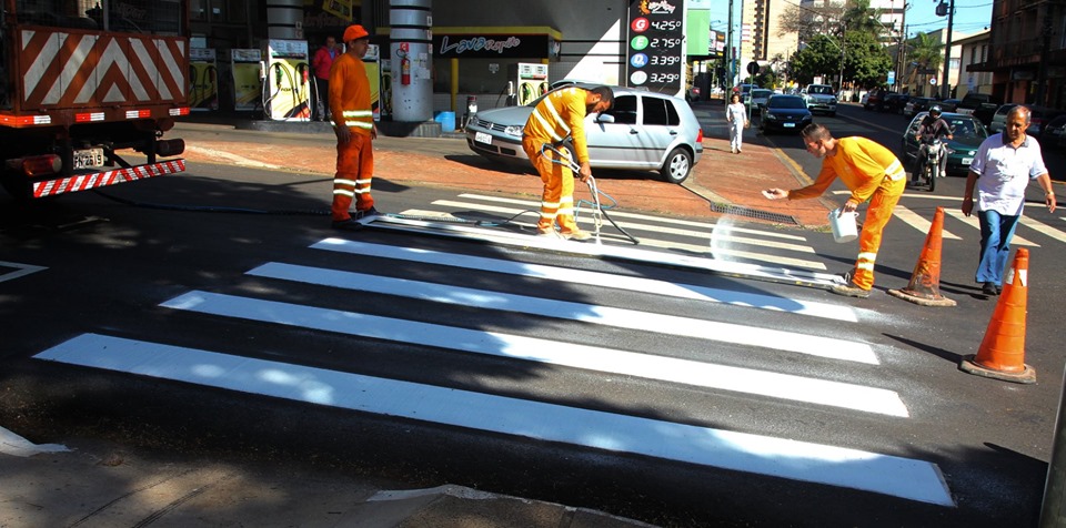 A Prefeitura incentiva boas práticas de trânsito com pintura de faixas para os pedestres