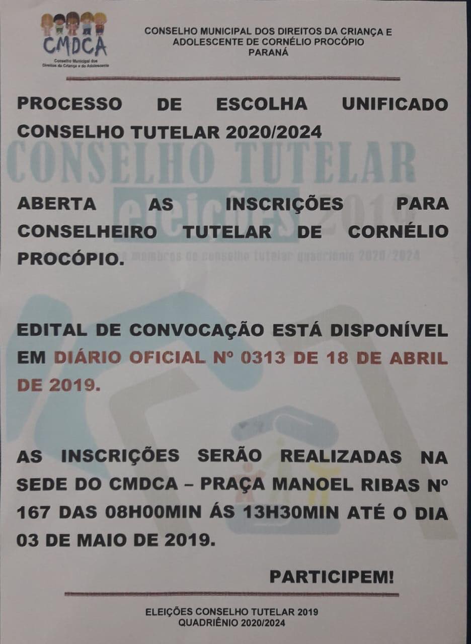 Aberta as inscrições para Conselheiro Tutelar