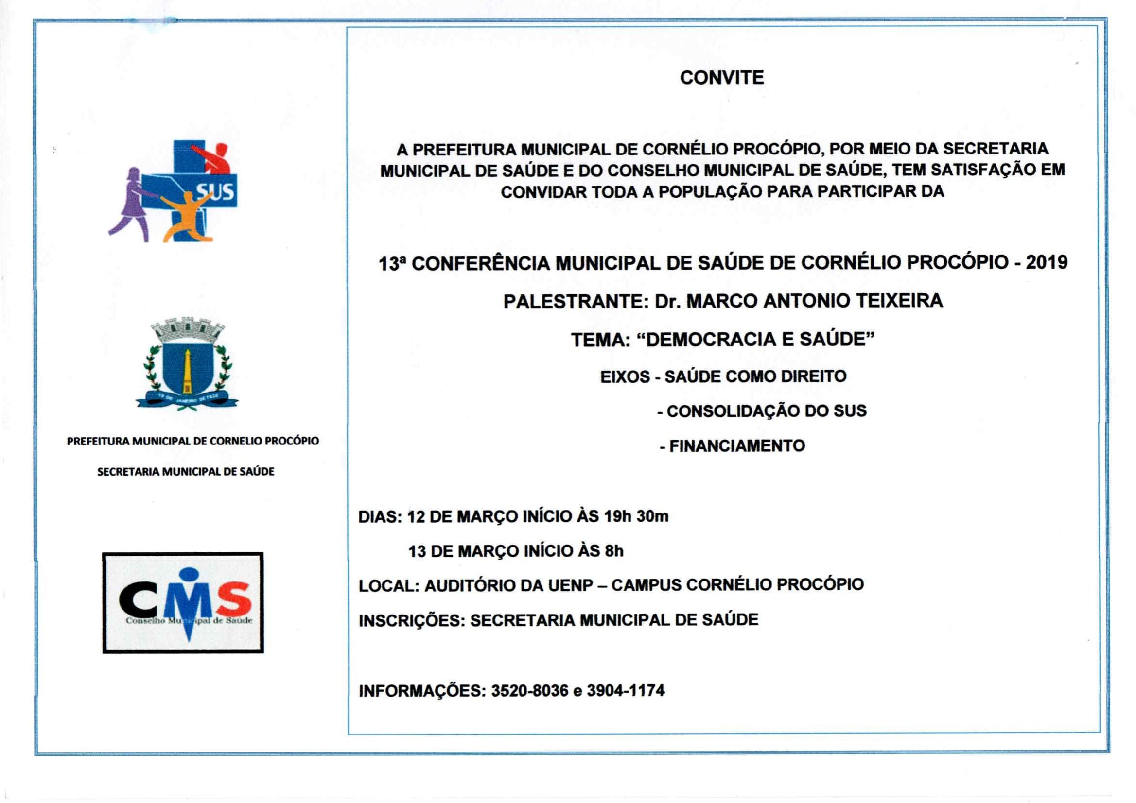 13º Conferência Municipal de Saúde de Cornélio Procópio - 2019