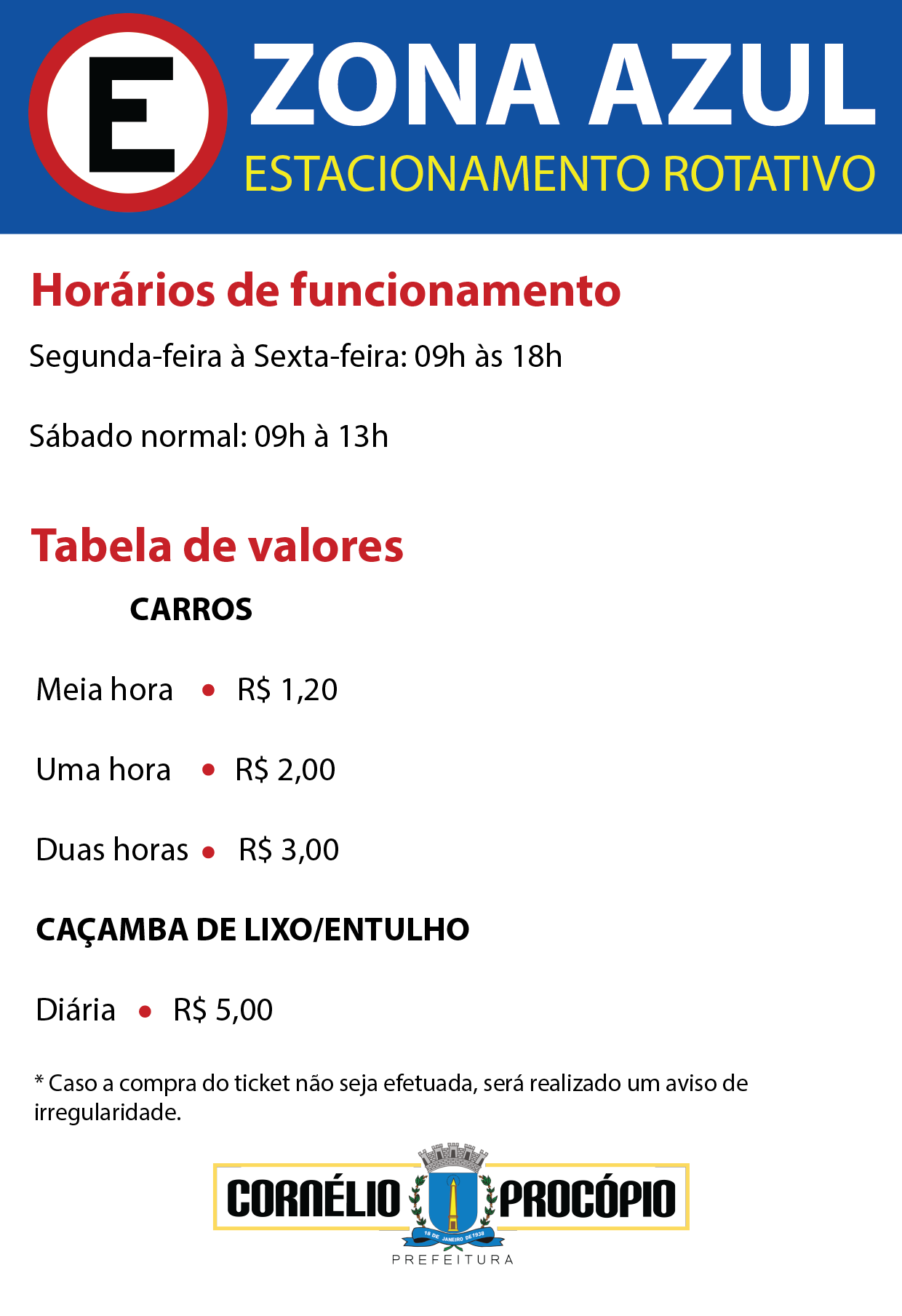 Rotativo divulga preços da Zona Azul em Cornélio Procópio