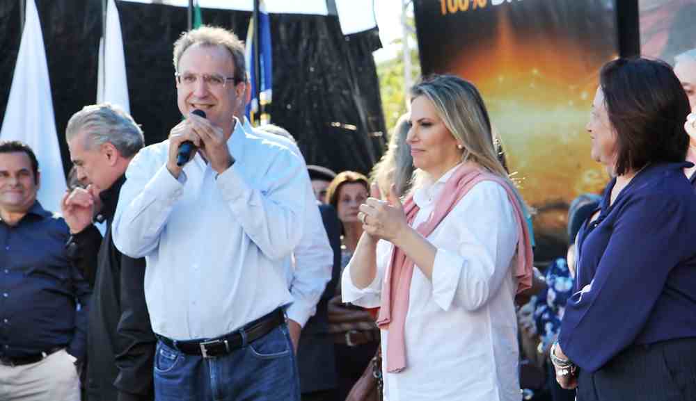Prefeito Amin Hannouche e a vice-prefeita Angélica Olchaneski parabenizam Professores