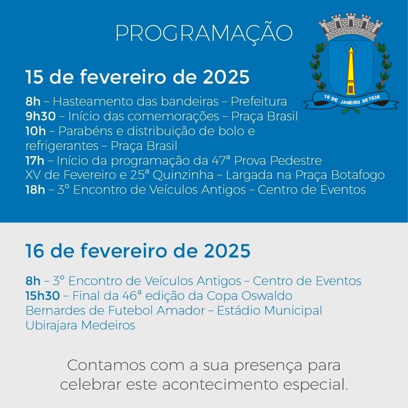 Cornélio Procópio comemora 87 anos com programação especial e gratuita para a população