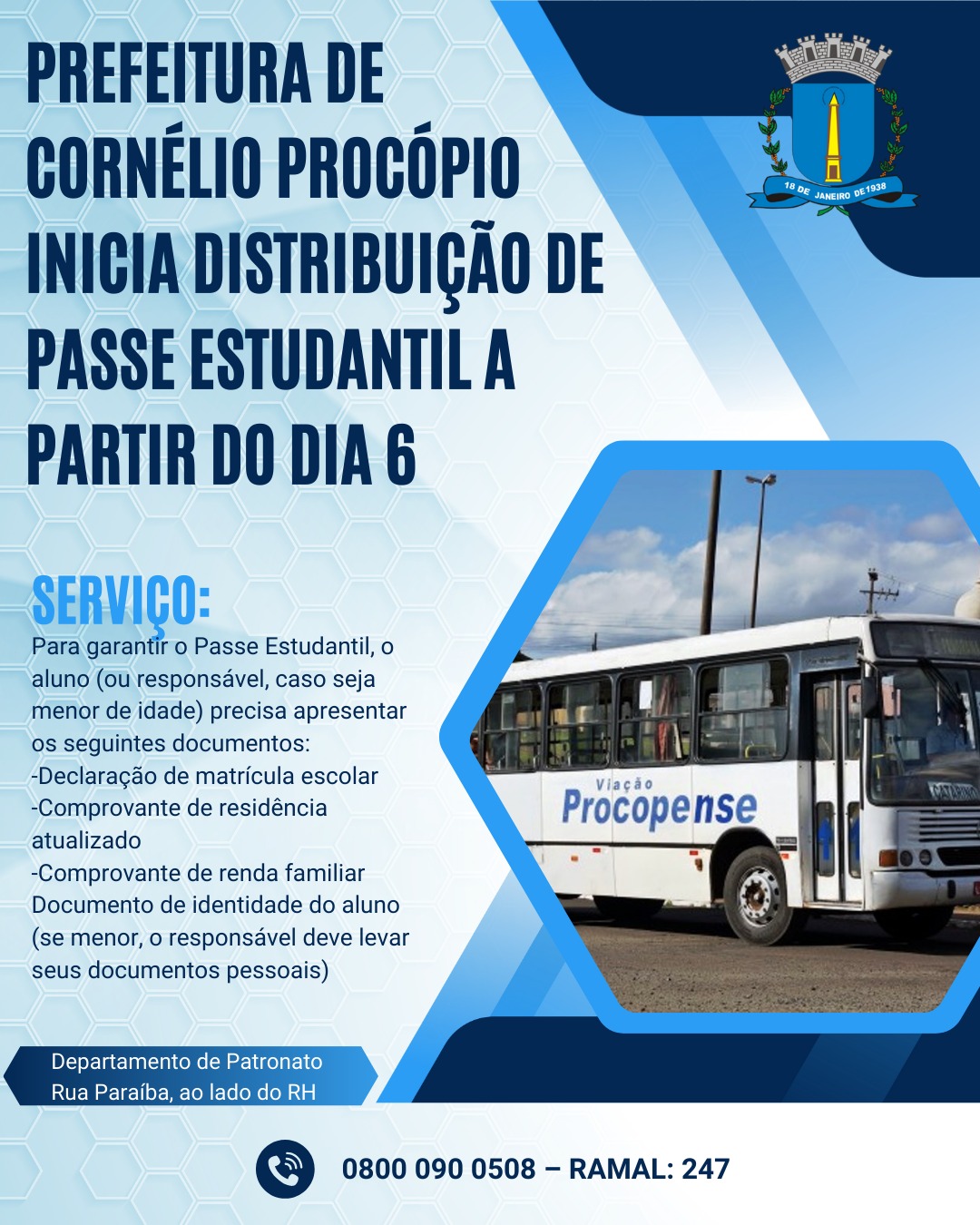 Prefeitura de Cornélio Procópio Inicia a distribuição do passe estudantil