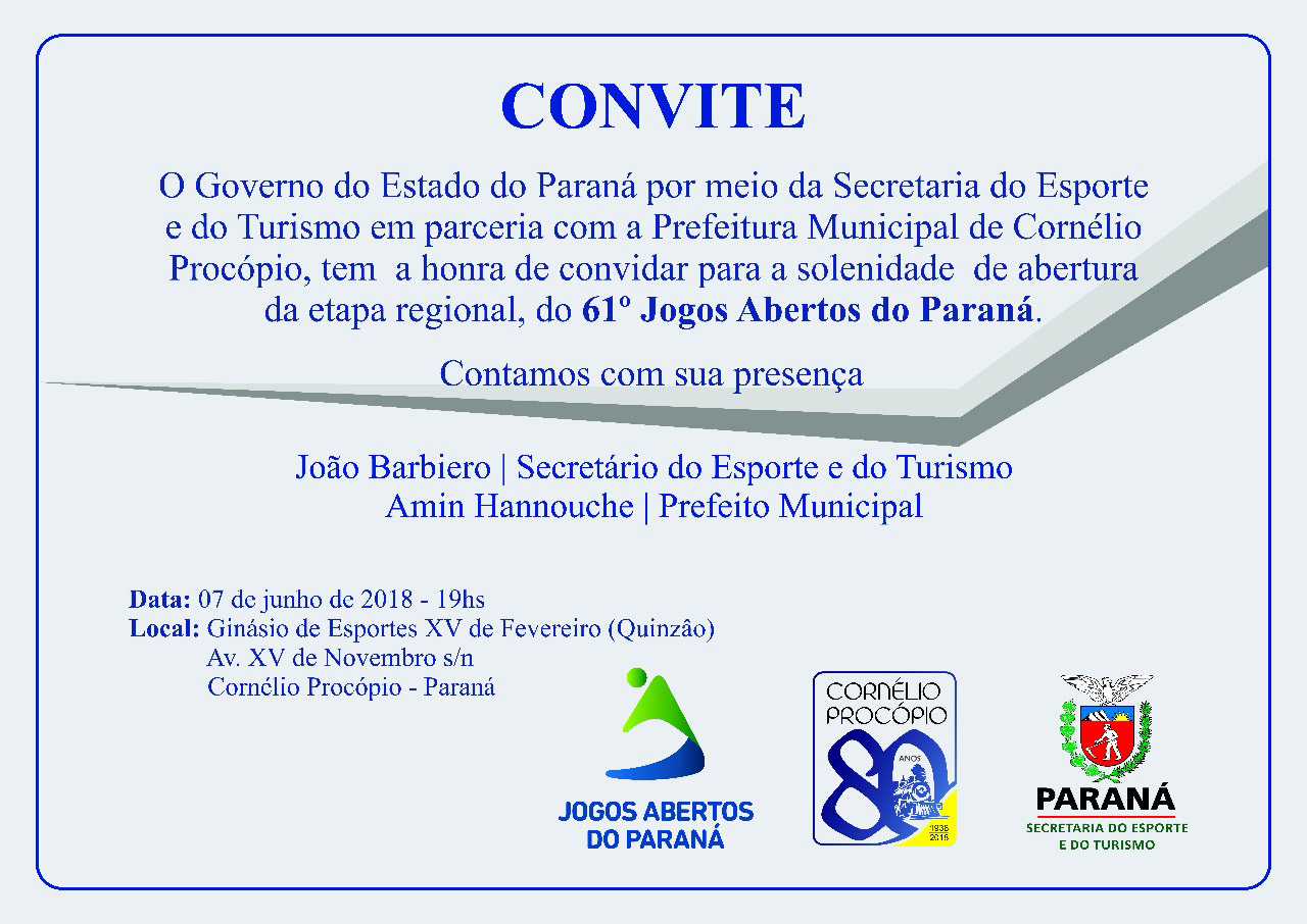Cornélio Procópio sedia Fase Regional dos 61º Jogos Abertos do Paraná