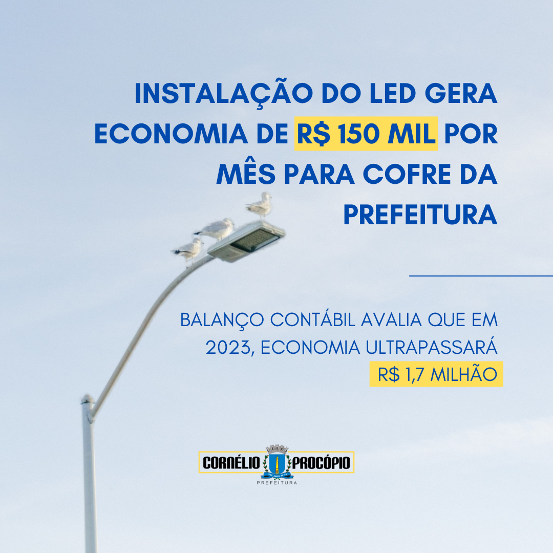 Instalação do Led gera economia de R$ 150 mil por mês para cofre da Prefeitura