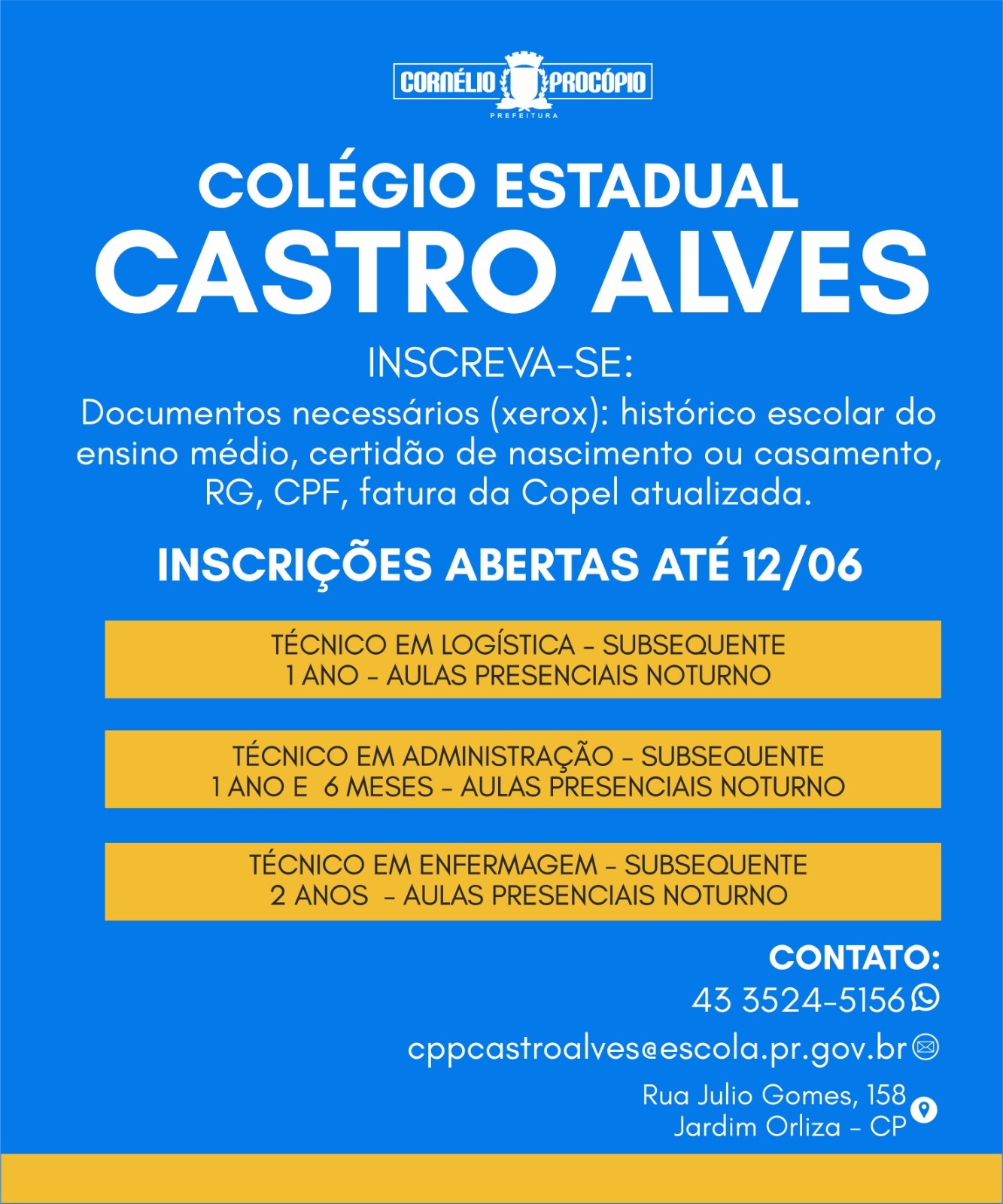 Castro Alves abre inscrições para os cursos técnicos subsequentes