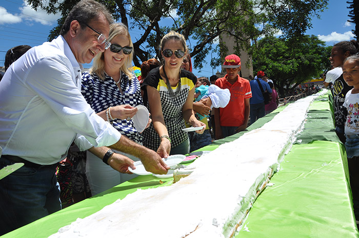 Bolo de 79 metros e um dia de comemorações atrai milhares de pessoas na Praça Brasil