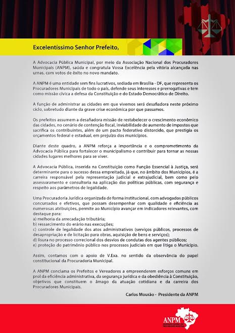 Associação Nacional dos Procuradores Municipais parabeniza Prefeito Amin pela vitória