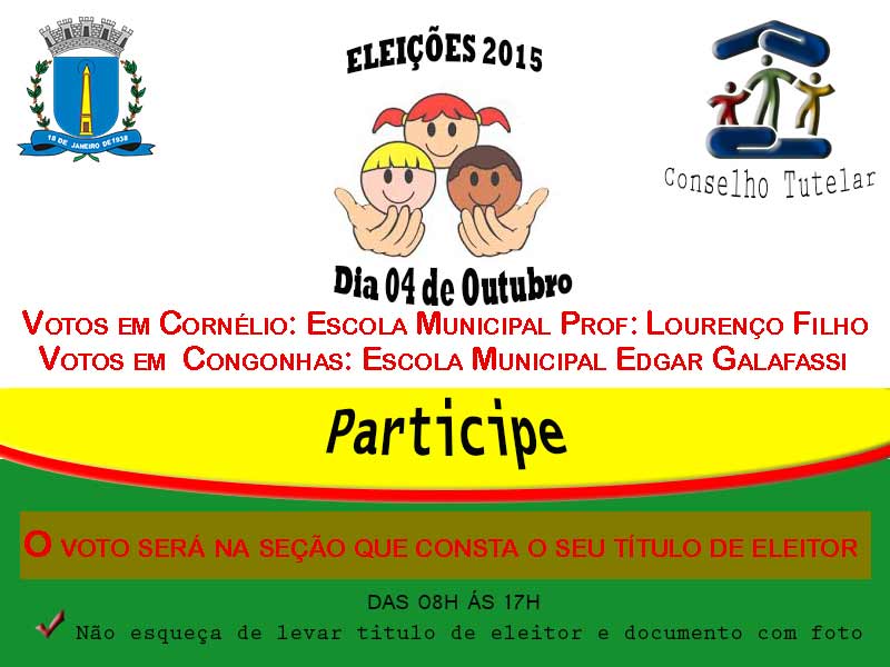 Em Cornélio eleição para Conselho Tutelar acontece dia 04 de outubro