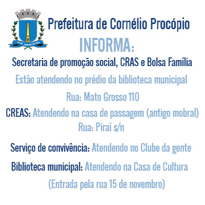 Alterações nos locais de atendimento
