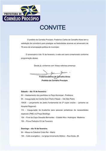 NOTA OFICIAL DA PREFEITURA MUNICIPAL DE CORNÉLIO PROCÓPIO SOBRE COMEMORAÇÃO AO ANIVERSÁRIO DA CIDADE.