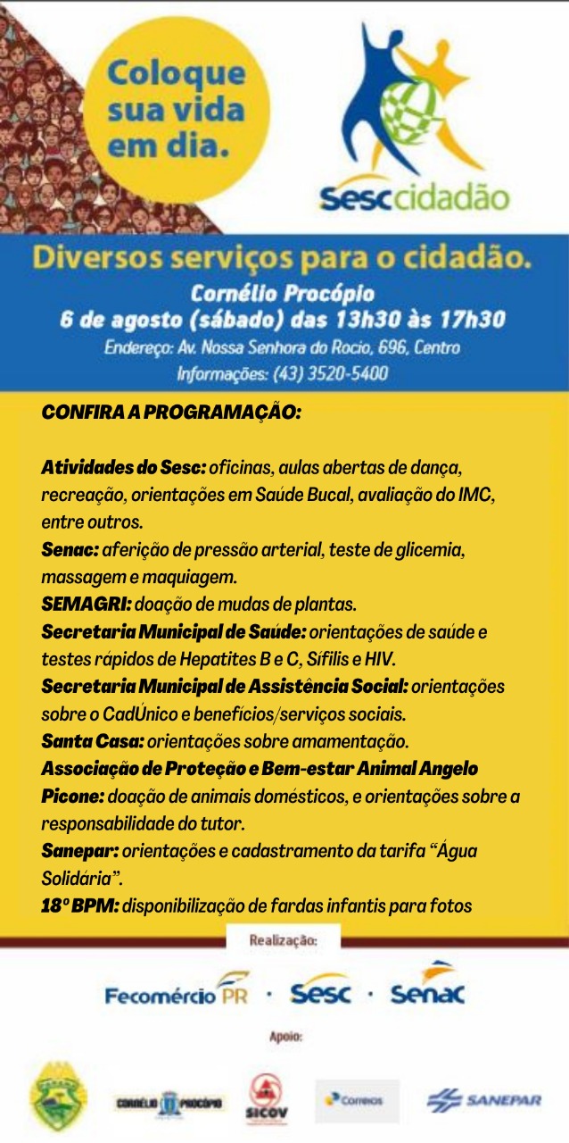 “Sesc Cidadão” oferece serviços para a população neste sábado em Cornélio Procópio