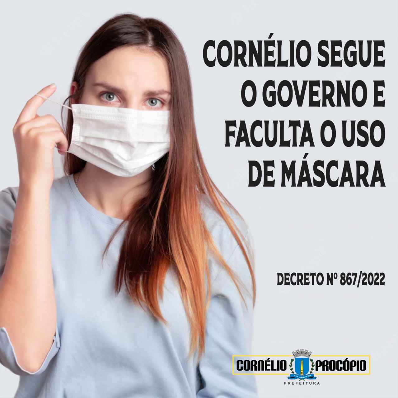 Cornélio Procópio segue decreto do Governo Estadual e libera uso da máscara em locais fechados