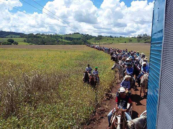 Centenas de cavaleiros com seus cavalos estiveram presentes.
