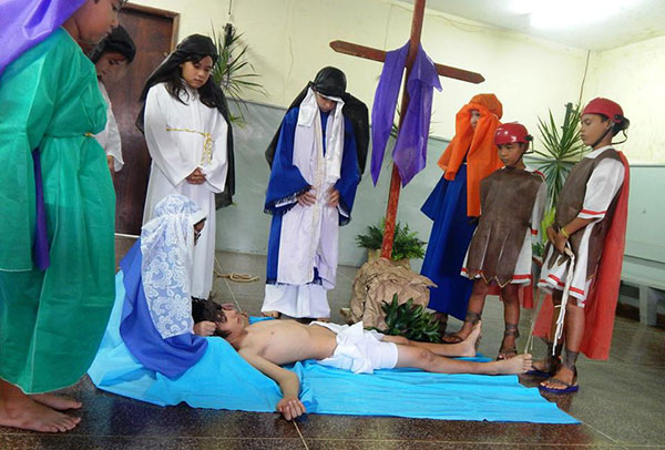 O fascínio e a beleza da história de Jesus Cristo encenada durante pouco mais de 60 minutos, por alunos da Escola Municipal Vitorino Gomes Henriques. Foi no último dia 1º, através da peça ¨Paixão, Morte e Ressurreição¨, que contou com a participação direta de 49 alunos e envolvimento da equipe, professores, funcionários e convidados.