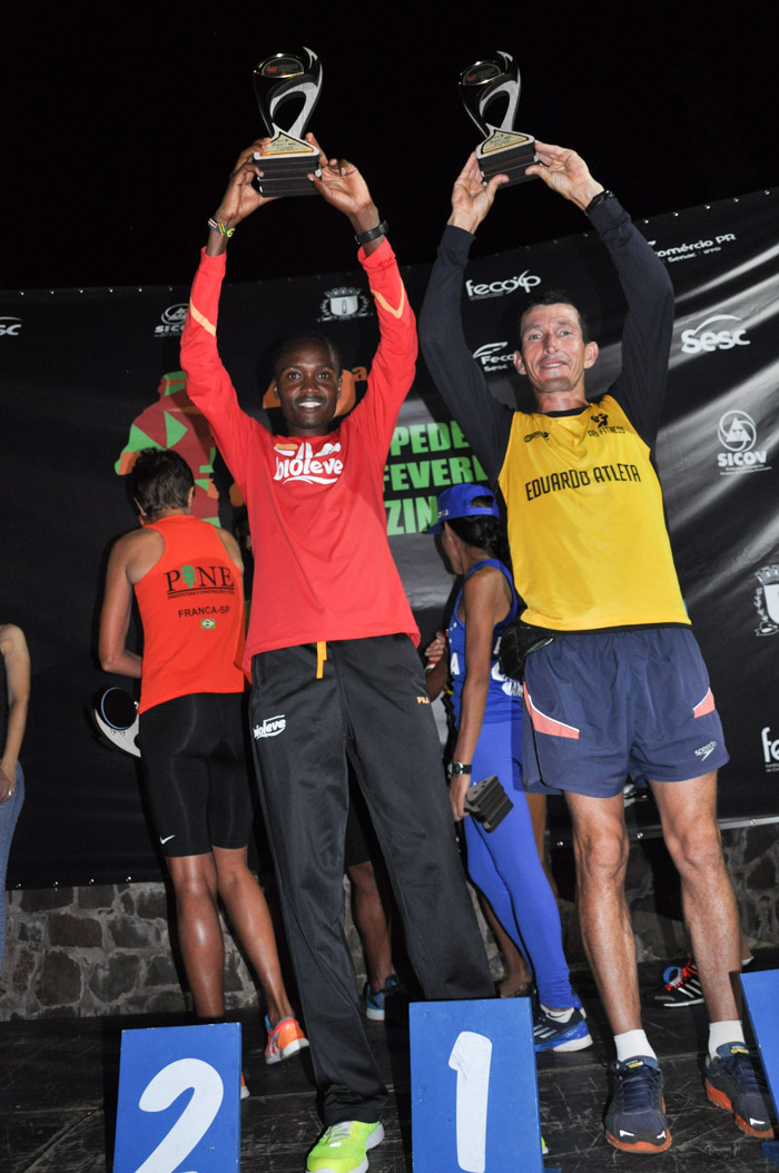 O vencedor da Prova Pedestre XV de Fevereiro Nelson Priva Mbuya, da Tanzânia com o 4º colocado, Elessandro Aparecido de Oliveira