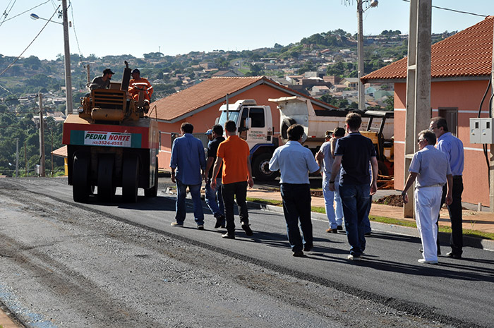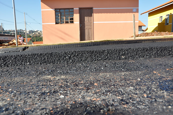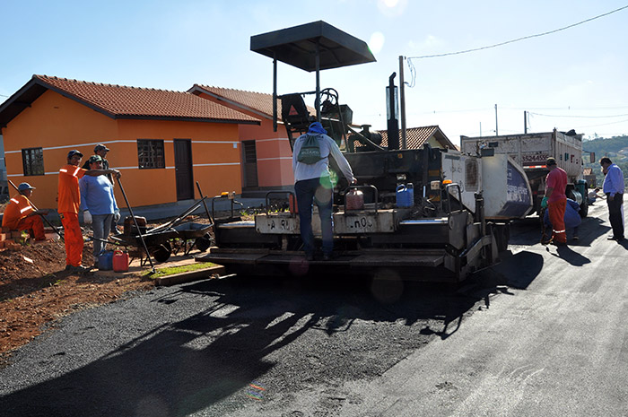 Depois de todo trabalho de base, realizado em todas as vias, a prefeitura iniciou nesta quinta-feira, a última etapa, aplicando uma camada de 4 centímetros de asfalto quente