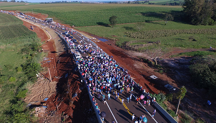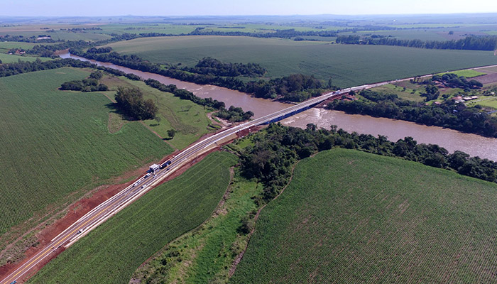 Bandeirantes – O prefeito de Cornélio Procópio, Amim Hannouche participou nesta sexta-feira da inauguração da nova ponte sobre o Rio das Cinzas, na PR-436, Rodovia Dino Veiga e que liga as cidades de Bandeirantes e Itambaracá, no Norte do Estado. Representando os municípios da Amunop – Associação dos Municípios do Norte do Estado, o prefeito afirmou que a obra tem grande importância para toda a região pela sua localização estratégica. A nova estrutura substitui uma antiga, que foi levada pelas fortes chuvas em janeiro de 2016. O governador Beto Richa destacou a presença do prefeito procopense e a qualidade dos serviços realizados na nova ponte. “Já tivemos duas pontes aqui que ruíram em momento de fortes chuvas e de inundação. Esta nova foi projetada justamente para suportar momentos mais críticos de inundações e fortes correntezas. Trazemos aqui mais segurança à população a custos mais baixos”, afirmou Richa. “Esta ponte vem para aliviar o transtorno da população que estava fazendo a travessia do rio com balsas. Nos mobilizamos para resolver a situação rapidamente e aliviar a vida muitas pessoas que se utilizam dessa passagem”, completou. O prefeito Amin afirmou que o governo do Paraná destinou cerca de R$ 16 milhões para a construção da ponte. No entanto, estão sendo feitas medições finais e a obra deve custar menos aos cofres públicos. “Ainda não foi apresentado o valor final, mas o custo deve girar em torno de R$ 13 milhões, o que corresponde a uma economia de mais de R$ 3 milhões”, afirmou o prefeito. (Comunicação/Prefeitura)