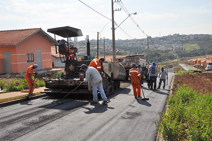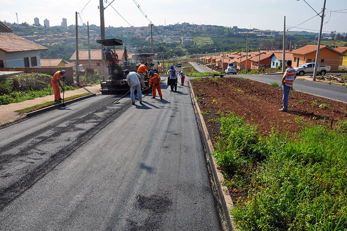 Pavimentação asfáltica está sendo concluída pela prefeitura, mas depende de tempo estável para completar o serviço