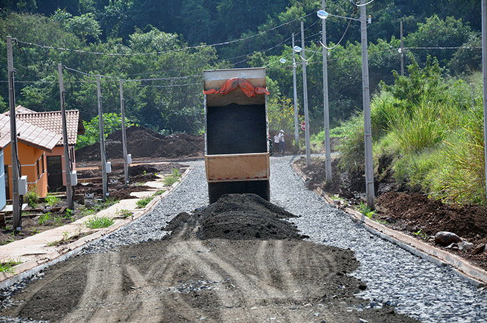 Cornélio Procópio - O trabalho de pavimentação do conjunto Martha Dequech foi paralisado neste início de semana em função das fortes chuvas que estão atingindo todo o Norte do Paraná. Segundo o prefeito Amin Hannouche, a previsão de entrega das unidades habitacionais deverá ser ainda neste semestre. "Nós precisamos de pelo menos 10 dias de sol para que o serviço seja completado. A maioria das ruas já foi pavimentada, restando poucos trechos para receber a melhoria. Como os moradores, nós também estamos ansiosos para entregarmos estas casas aos mutuários. Esperamos realizar este sonho nos próximos dias. As equipes da prefeitura e da empreiteira que conclui o conjunto estão trabalhando muito para que tudo fique pronto nos próximos dias. Só dependemos mesmo do tempo, de bastante sol para que tudo seja concluído", disse o prefeito Amin Hannouche, que acompanha pessoalmente todo o trabalho feito pelas equipes da prefeitura naquele conjunto. (Comunicação/Prefeitura)