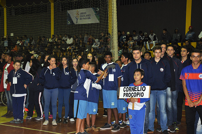 Cornélio Procópio - A delegação procopense é a maior nos 64º Jogos Escolares do Paraná, que está sendo realizado em Uraí nesta semana. De acordo com a Fundação de Esportes,, Fecop, são cerca de 115 atletas de 14 escolas que estão representando o município nesta fase dos Jogos em várias modalidades. A maioria dos alunos está hospedada em Uraí e participando de uma verdadeira maratona de competições. Para o prefeito Amin Hannouche, que participou da cerimonia da abertura dos Jogos, realizada no último final de semana, esta fase é importante e decisiva para as pretensões das escolas de se classificar para as próximas etapas. "Nós queremos agradecer todos os atletas e suas escolas pela participação nestes jogos. É bom ver nossa juventude desfrutando destes momentos que só o esporte pode proporcionar. Como presidente da Amunop - Associação dos Municípios do Norte do Paraná, também queremos parabenizar todas as cidades que estão participando deste importante evento esportivo para todo o nosso estado", disse o prefeito. As competições estão sendo realizadas em vários ginásios de esportes e clubes de Uraí, que recebe esta semana, cerca de 1.600 alunos de 19 cidades integrantes do Núcleo Regional de Educação de Cornélio Procópio. O 64º Jogos Escolares do Paraná são promovidos pelo Governo do Estado, por meio das Secretarias do Esporte e Turismo e da Educação, com apoio do município de Uraí. (Comunicação/Prefeitura)
