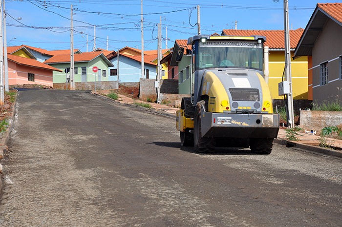 Cornélio Procópio - Depois de três dias sem chover, o conjunto Habitacional Martha Dequech voltou a receber nesta segunda-feira, (Dia 12), os equipamentos que estão realizando a conclusão da pavimentação nas vias de acesso e interna daquele conjunto. De acordo com o prefeito Amin Hannouche, a prefeitura precisa de pelo menos uma semana de sol para concluir a pavimentação e promover a entrega oficial dos imóveis do conjunto, que estão concluídos. "Estamos torcendo para que pare de chover pelo menos uma semana, para que nossas máquinas concluam o serviço, para que nós possamos entregar este conjunto tão importante para nossa comunidade. A mesma expectativa dos moradores, nós também temos de finalmente realizar o sonho da casa própria para estas famílias que estão esperando há mais de três anos. Como têm chovido muito, nós não podemos trabalhar. Com esta melhora nas condições do tempo, as máquinas já estão atuando no conjunto para concluir o trabalho. Queremos entregar o conjunto Martha Dequech ainda neste semestre se tudo correr bem com o clima. Basta apenas uma semana de sol que o conjunto estará concluído", confirmou o prefeito. (Comunicação/Prefeitura)