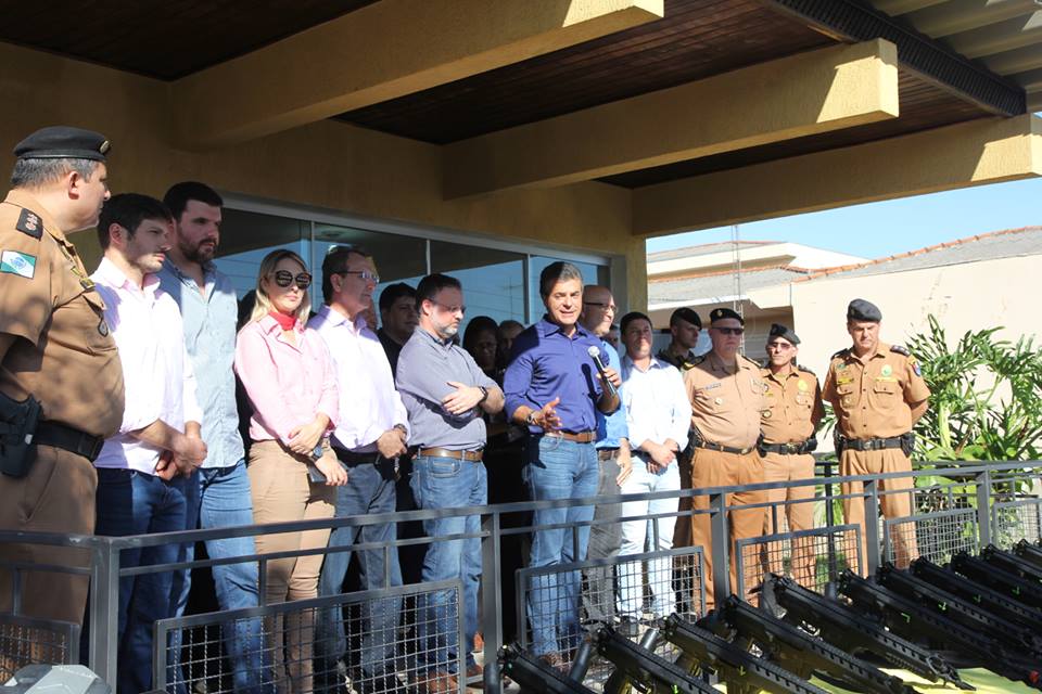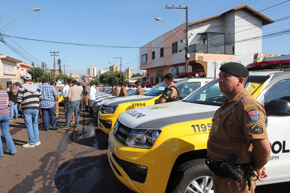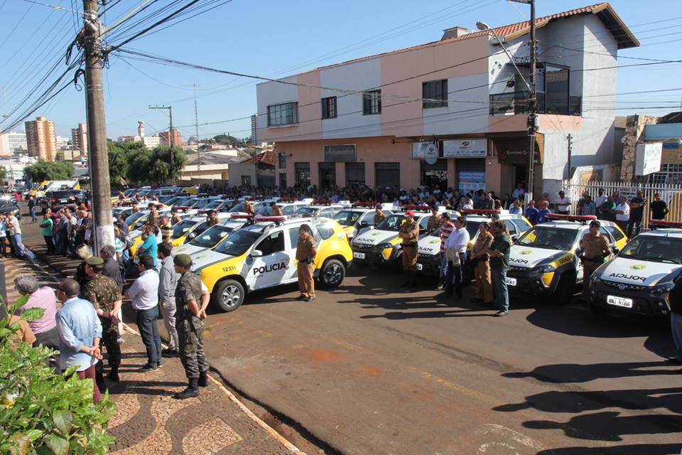 Durante entrega de viaturas para o 18º Batalhão de Policia Militar e 11ª subdivisão Policial, Beto Richa confirma recursos para o prefeito Amin Hannouche