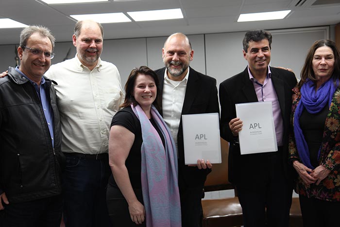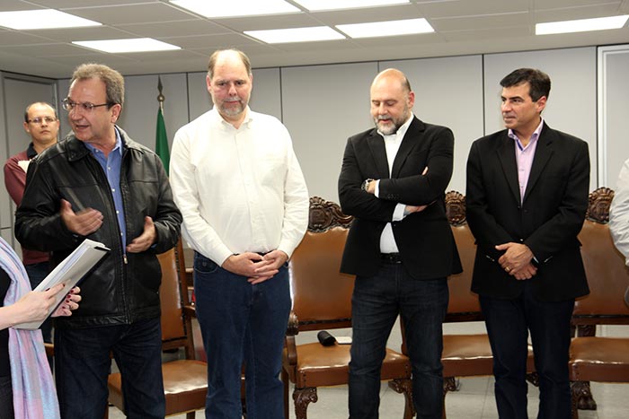 Cornélio Procópio - O prefeito Amin Hannouche participou recentemente no gabinete do prefeito de Londrina, Marcelo Belinati da solenidade de entrega de documento de constituição do Arranjo Produtivo Local (APL) Audiovisual de Londrina e Região ao secretário de Estado da Cultura do Paraná, João Luiz Fiani. Segundo Amin Hannouche a APL teve sua constituição viabilizada pela Secretaria Municipal de Cultura de Londrina, que auxiliou na construção do projeto. A finalidade é possibilitar o estímulo à diversificação da produção audiovisual e o fortalecimento da produção independente e das produções regionais, visando o incremento de sua oferta e a melhoria permanente do padrão de qualidade. Mais de 15 órgãos e instituições locais participaram de sua elaboração, além de grande parte das produtoras de audiovisual existentes hoje em Londrina e região. Segundo o Sebrae, atualmente são quase 80 produtoras atuando na região nesta área. “Inicialmente este projeto seria destinado apenas à região metropolitana de Londrina, mas ele foi desmembrado e deverá beneficiar também a região da Associação dos Municípios do Norte do Estado, a Amunop”, disse o prefeito, que preside a entidade. Também participaram da cerimônia, o deputado federal Alex Canziani, o vereador Péricles Deliberador, representantes da Secretaria Municipal de Cultura de Cornélio Procópio e outras pastas, produtores culturais e membros das entidades que integram o APL Audiovisual de Londrina e Região, servidores públicos, entre outros. (Comunicação/Prefeitura)