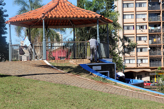 Equipes da Secretaria de Serviços Urbanos estão recuperando alguns pontos da Praça, localizada no centro da cidade