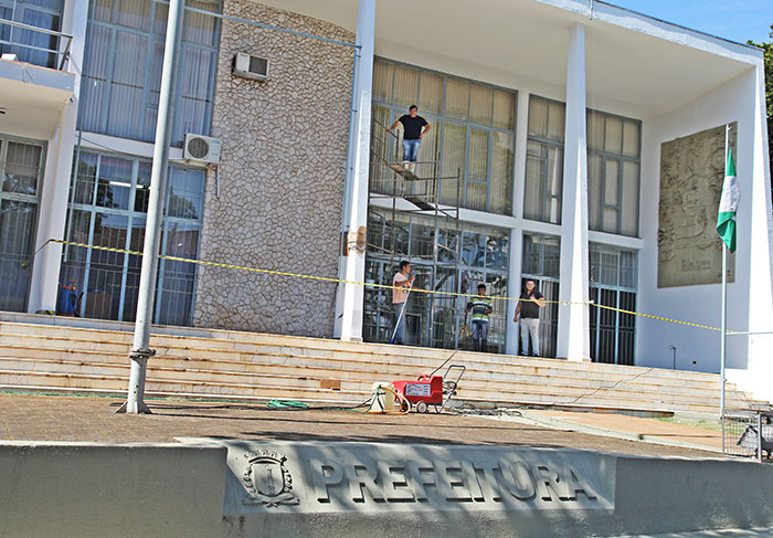 Cornélio Procópio – Os trabalhos de restauração do prédio central da Prefeitura do Município de Cornélio Procópio continuaram na última semana. Uma empresa terceirizada está recuperando parte da área frontal com a limpeza de um bloco de pedra e o piso em granito. Segundo o prefeito Amin Hannuche, o prédio necessitava destas reformas e manutenção, porque vários departamentos estavam sem as mínimas condições de trabalho e de acolhimento daquelas pessoas que procuram a prefeitura. Como ficou muitos anos sem a devida manutenção, o prédio localizado no centro da cidade continua recebendo pintura interna e melhorias no seu acesso externo. Amin Hannouche lembrou que o prédio da prefeitura de Cornélio Procópio, conhecido como “Paço Municipal”, foi inaugurado em 1967 pelo então prefeito Rosário Pitelli (In memoriam) e sua arquitetura original continua sendo preservada. “É um patrimônio Histórico que temos que deixar conservado para as próximas gerações”, disse o prefeito. (Comunicação/Prefeitura)