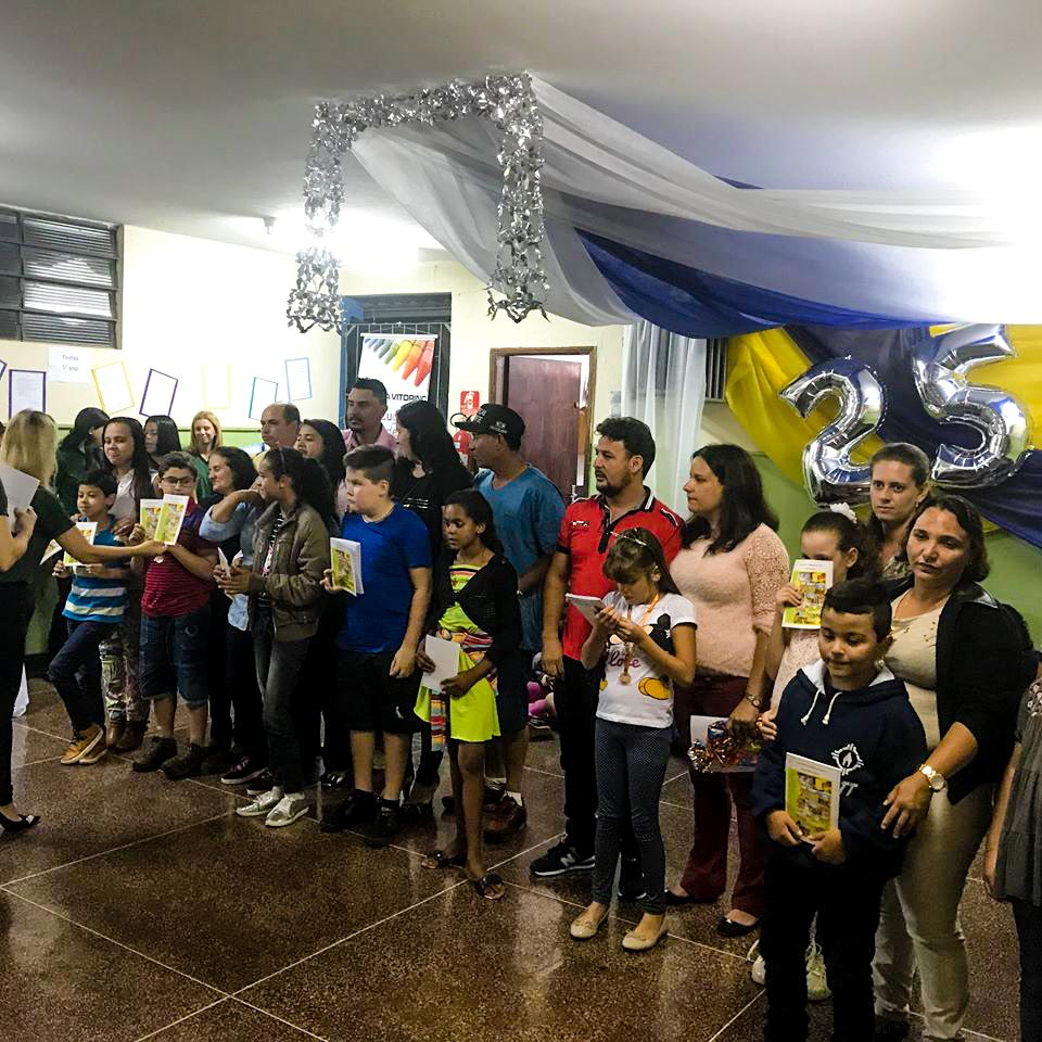 Cornélio Procópio - A Escola Municipal Vitorino Gomes Henriques promoveu recentemente, a premiação dos alunos da Educação Infantil e Ensino Fundamental do Projeto Valores, de Leitura. Segundo a diretora Renata Bottarelli Rodrigues, a premiação demonstrou o que estes alunos e alunas aprenderam em sala de aula ao longo do ano. A diretora ressaltou que a participação superou as expectativas e produziu resultados altamente positivos. “O desejo de aprender acontece a partir da motivação e do incentivo, fato que agradecemos aos nossos professores, funcionários e principalmente aos pais. O ato de autografar esse livro é imensurável, tanto para o desenvolvimento da criança quanto para satisfação da família em observar os resultados alcançados. Procuramos deixar nossos alunos viajarem pelo mundo da leitura e escreverem suas inspirações, pois as portas do conhecimento se abrem quando isso acontece”, disse a diretora.