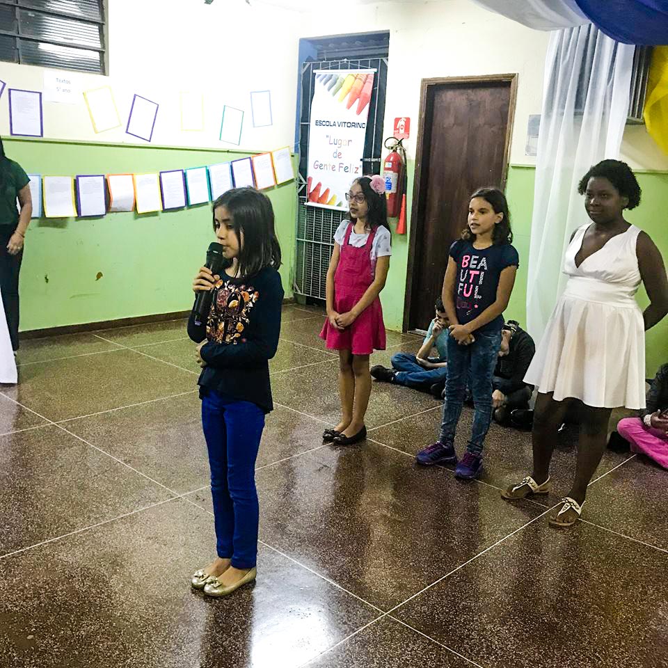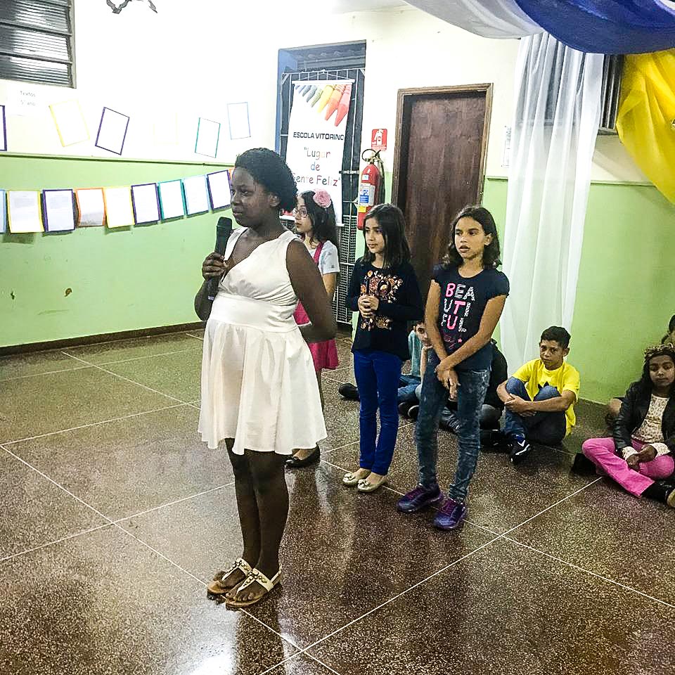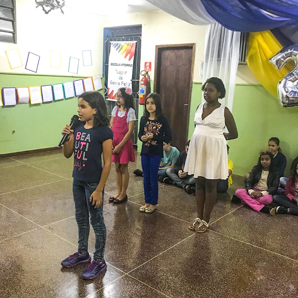 Pais, alunos e convidados participaram do evento na Escola Municipal Vitorino Gomes Henriques