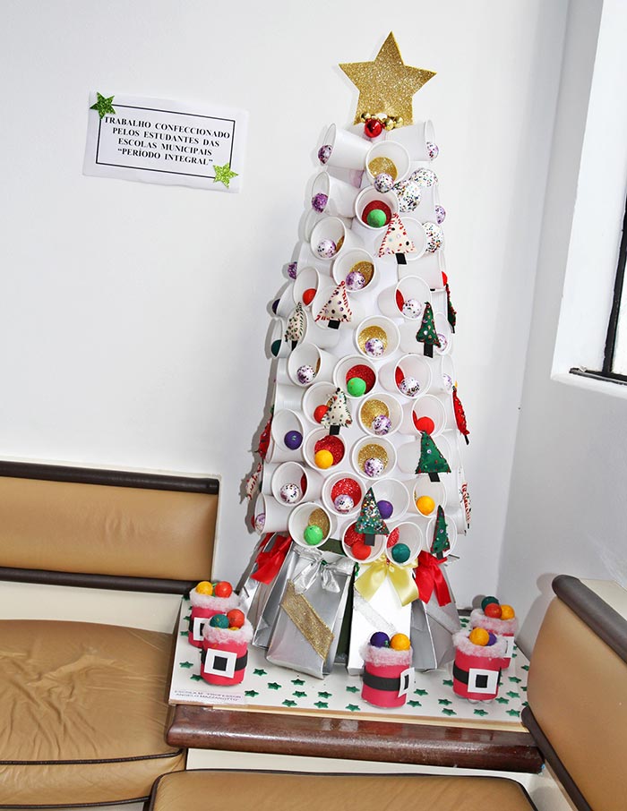 Cornélio Procópio - O prédio central da Prefeitura de Cornélio Procópio recebeu esta semana uma série de enfeites confeccionados por alunos das Escolas Municipais em Período Integral. Segundo a Secretaria Municipal de Educação, Maria Lídia Funari Pimenta os estudantes dedicaram várias horas para montar guirlandas, pintar pratos ornamentados com motivos natalinos, arvore de Natal e um presépio, todos com produtos reciclados. De acordo com a Secretária de Educação, além da recepção e do protocolo, outros setores, como sala de espera do gabinete, comunicação e outros departamentos também foram agraciados com os enfeites natalinos. O aproveitamento de material reciclado foi destacado pelo prefeito Amin Hannouche. Ele afirmou que além de conscientizar os alunos da importância da reciclagem, o espírito natalino prevalece na memória e na vida de todos os alunos, seus professores e familiares. "Foi uma grata surpresa estes enfeites feitos pelos alunos do Período Integral das nossas escolas municipais ornamentando a nossa prefeitura", disse o prefeito. (Comunicação/Prefeitura)