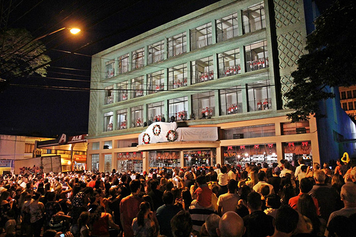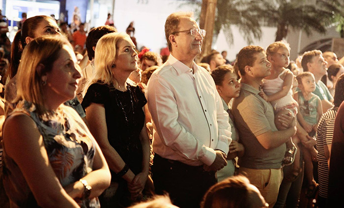 Cornélio Procópio - "Uma noite memorável". Assim pode ser definido o evento que levou milhares de pessoas ao centro da cidade para assistir a Cantata de Natal promovida pela prefeitura do Município. Durante mais de uma hora, os procopenses puderam assistir a um espetáculo sem precedentes com 290 vozes do Coral do Colégio Nossa Senhora do Rosário, que desfilou uma série de músicas natalinas, homenageando o Renascimento de Jesus Cristo, comemorado por Cristãos do mundo inteiro. Olhares fixos se encantaram olhando o prédio Marivone, um dos primeiros edifícios que foram construídos em nossa cidade e que foi preparado especialmente para a Cantata. Ao som a Banda Marcial do Coleginho e eletrônico, o coral demonstrou muito profissionalismo e tranquilidade na execução das melodias. O prefeito Amin Hannouche acompanhou a Cantata de Natal ao lado da primeira Dama Mary Alcântara Hannouche, da vice-prefeita Angélica Olchaneski, assessores e convidados e parabenizou a escola pelo presente de Natal que proporcionou a todos os procopenses que foram ao evento. "Foi muito emocionante. Foi um espetáculo que encheu os olhos daqueles que participaram. Queremos agradecer à direção, professores, colaboradores e alunos do Colégio Nossa Senhora do Rosário pela Cantata maravilhosa que realizaram. Todos estão de parabéns mesmo", afirmou o prefeito. Amin Hannouche também agradeceu à Secretaria de Cultura e todos os envolvidos no evento que marcou mais uma etapa da programação de Natal deste ano em Cornélio Procópio. (Comunicação/Prefeitura)