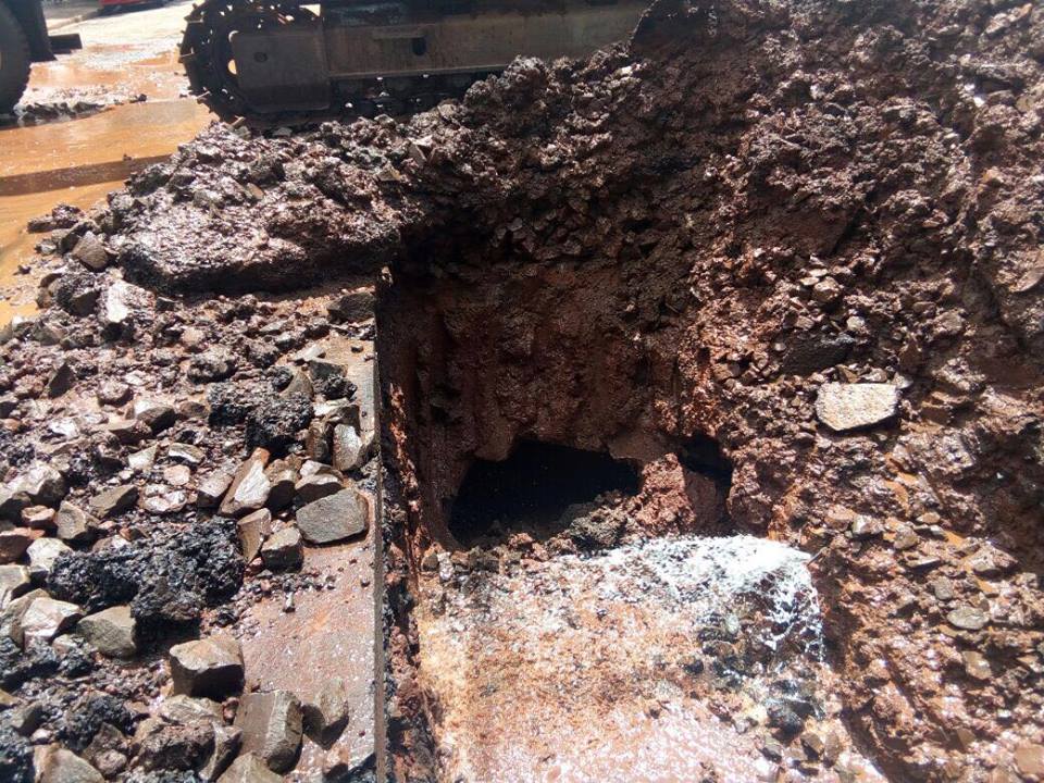 Galeria estava entupida com uma grande quantidade de detritos, lixo e entulhos
