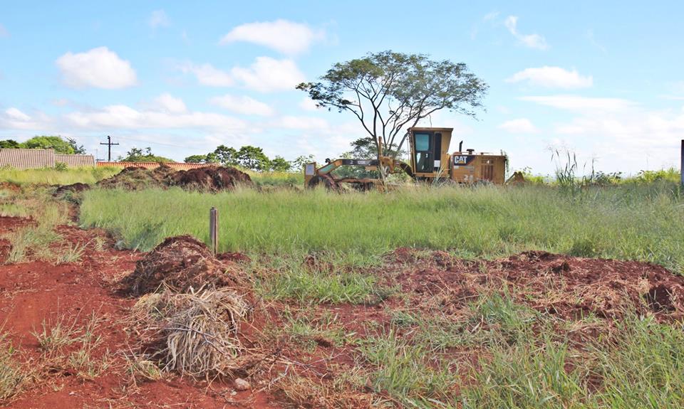 Com o tempo firme, equipamentos da prefeitura iniciaram a limpeza da futura super creche daquele bairro