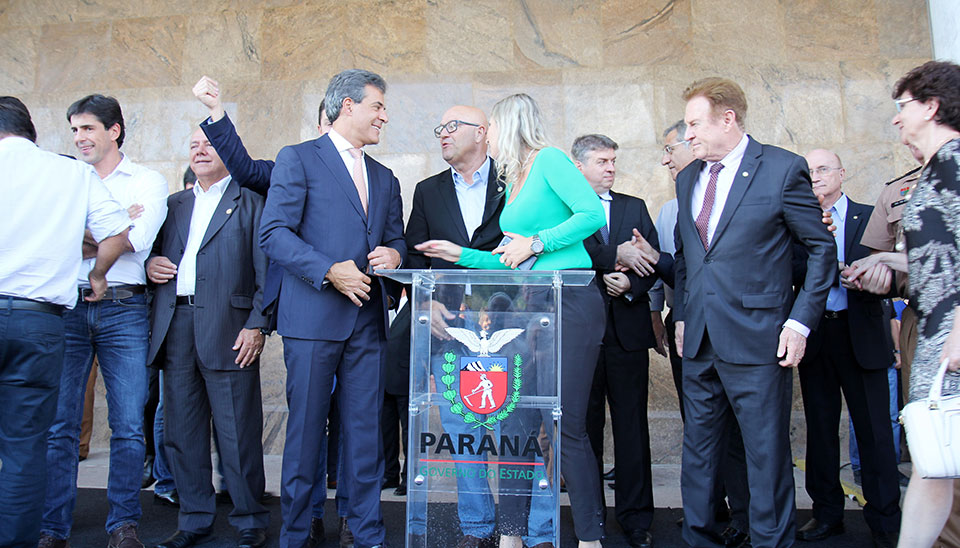 Cornélio Procópio – O governador do Paraná, Beto Richa anunciou nesta quinta-feira em solenidade realizada em Curitiba, que o município de Cornélio Procópio deverá receber uma unidade do Colégio Militar do Paraná. Richa confirmou ainda a implantação de mais duas unidades, em Pato Branco e Cascavel. A prefeita Angélica Olchaneski, que substitui o prefeito licenciado Amin Hannouche participou da solenidade, ao lado do Deputado Luiz Claudio Romanelli e autoridades convidadas. O governador explicou que a gestão da escola é da Polícia Militar e o quadro de professores são da rede estadual de ensino. “Não tenho dúvida que está escola que será instalada em Cornélio Procópio seguirá as diretrizes e o sucesso da unidade pioneira de Curitiba, que é referência no Brasil. Para o comandante-geral da Polícia Militar, coronel Maurício Tortato, a participação da sociedade de Cornélio Procópio foi fundamental para a instalação do Colégio no município. A vice-prefeita agradeceu o empenho do deputado Romanelli e a boa vontade do Governador Beto Richa em concluir este processo de implantação do Colégio Militar de Cornélio Procópio. “Como o prefeito Amin, nós também estamos muito felizes por esta iniciativa importante para nossa cidade. Um trabalho forte do Deputado Romanelli e autoridades, que certamente vai refletir positivamente na nossa querida Cornélio Procópio”, disse a prefeita. (Comunicação/Prefeitura)