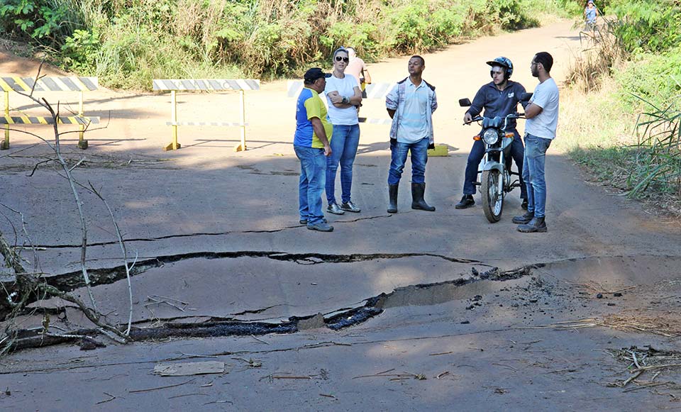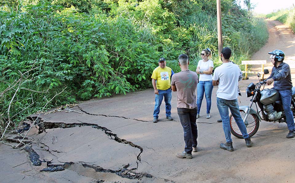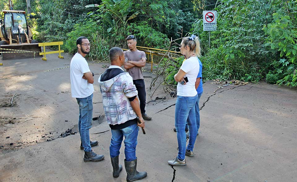 Prefeita Angélica Olchaneski de Mello acompanhou o início dos trabalhos de restauração da ponte, que sofreu avarias em função das fortes chuvas que caíram na nascente do Ribeirão Tangará no final de março