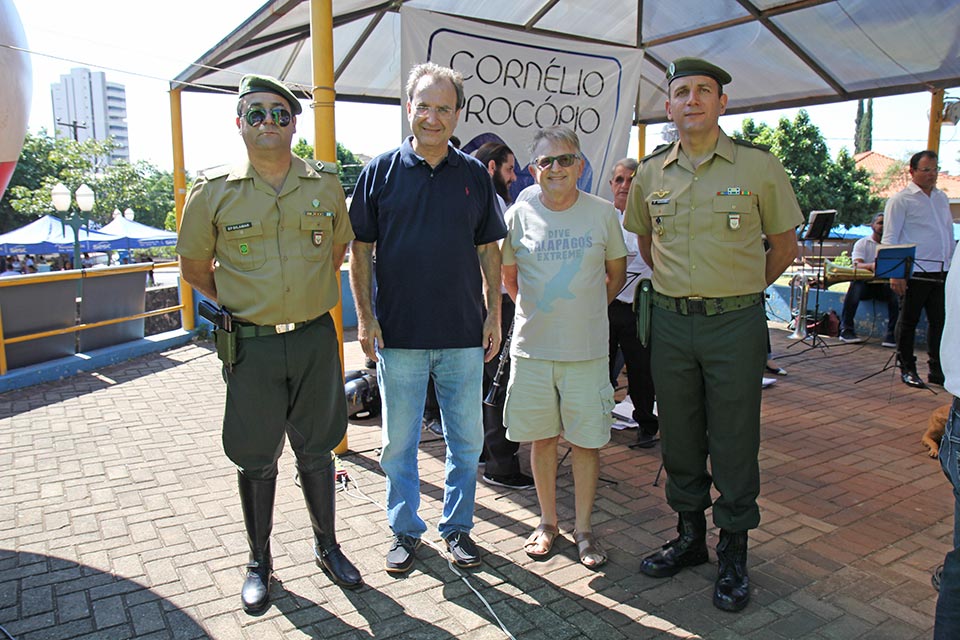 Cornélio Procópio – O prefeito Amin Hannouche participou na manhã desta terça-feira das comemorações do “Dia do Trabalho”, em Cornélio Procópio. Na oportunidade, o prefeito destacou a importância de todos os trabalhadores procopenses e do país, no desenvolvimento da cidade, do estado e do país. Ele parabenizou os trabalhadores e agradeceu o empenho de todos os colaboradores da Prefeitura e de outros órgãos da administração pública e privada. “Todos nós somos trabalhadores e merecemos todas as homenagens que são prestadas em todo o mundo. A todos que como nós, colabora com o crescimento da sua cidade, da sua empresa do seu trabalho, nosso reconhecimento e nossos parabéns”, afirmou o prefeito. As atividades começaram às 8 horas, com a equipe da Saúde do Município e de faculdades de enfermagem que passaram a atender a população com a medição da pressão, verificação da glicose e outras recomendações, além de serviços beleza. A cerimônia oficial teve a participação dos Atiradores do Tiro de Guerra 05-002, Turma 80 Anos de Cornélio Procópio e da Banda Santa Cecília. Os alunos procederam o hasteamento do Pavilhão Oficial e Ordem Unida. Ainda pela manhã houveram a apresentação de Taiko, Danças da Musicart, Zumba e Teatro com a equipe da Faculdade Dom Bosco. No período da tarde várias atividades ainda estão sendo realizadas com a presença da Associação Feira da Lua. Até as 22 horas, a Praça Botafogo deverá receber milhares de pessoas. (Comunicação-Prefeitura)