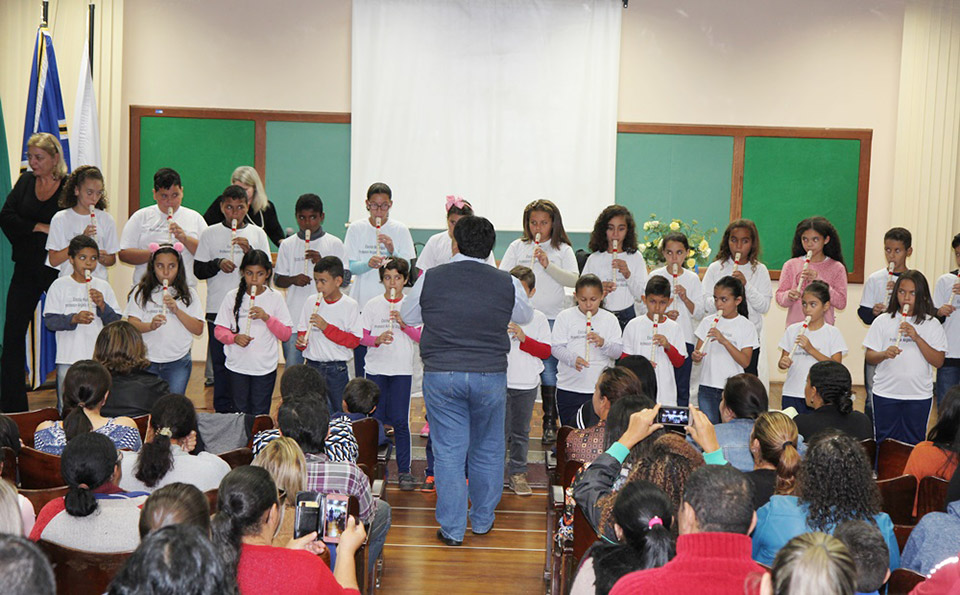 Conforme a Secretária, o Seminário de Encerramento contou com Palestra da Professora Doutora Roberta Negrão de Araújo, da Universidade Estadual do Norte do Paraná, Campus Cornélio Procópio, com o tema “Campos de Experiência e Áreas do conhecimento”. A Secretária Municipal de Educação Maria Lídia Funari Pimenta, agradeceu o empenho de todos os organizadores e a presença de todos os envolvidos. O evento foi abrilhantando com a apresentação do coral e flauta dos alunos das Escolas Municipais Professor Ângelo Mazzarotto, Professora Eunice Gatti Gomes, Dr. Acyr Ivo Carazzai, Vereador Damasco Adão Sottile e Professor Aníbal Campi. (Comunicação/Prefeitura)