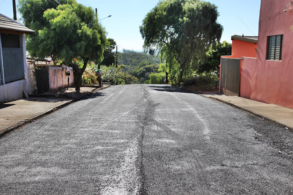 A Rua Isbrair Olino de Paula foi totalmente recuperada através da aplicação de Micro pavimento