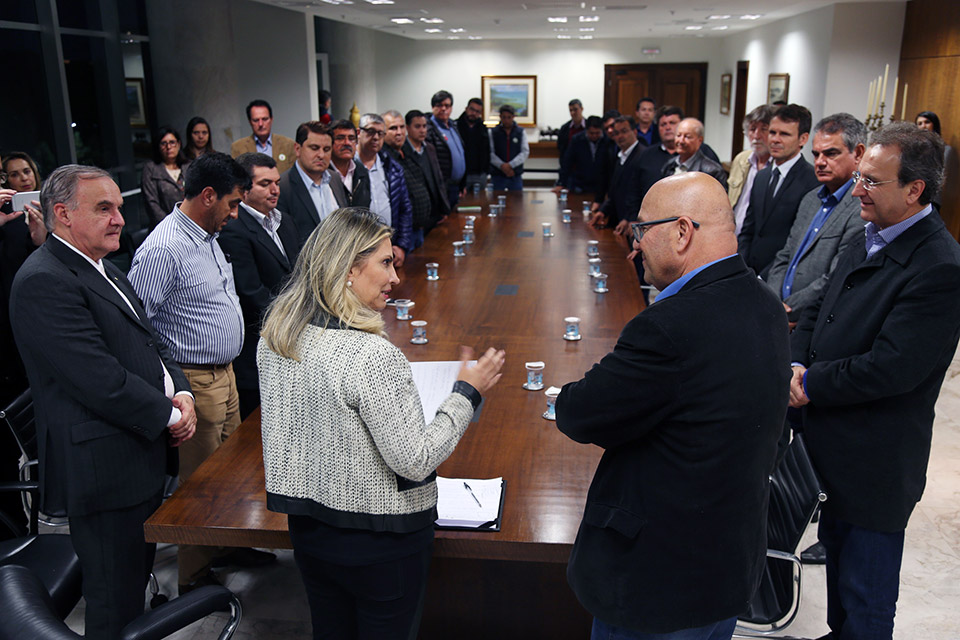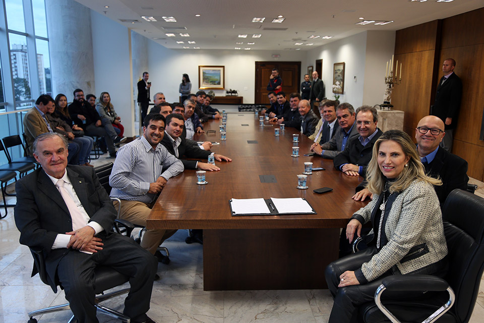 Cornélio Procópio – O prefeito Amin Hannouche participou esta semana de uma reunião com a Governadora do Paraná, Cida Borghetti, deputados que representam a região e municípios da Amunop – Associação dos Municípios do Norte do Paraná. Na oportunidade foram firmados vários convênios que deverão beneficiar Cornélio Procópio em vários setores da Administração. Segundo o prefeito Amin Hannouche, os convênios permitirão a compra de duas ambulâncias e a liberação de R$ 300 mil para compra de equipamentos para Secretaria Municipal de Saúde, a aquisição de uma Van para a Fundação de Esportes, a Fecop, um veículo para a Escola do Trabalho e veículos e equipamentos para os órgãos do governo do Estado, sediados no município. “Temos muitos convênios que já estão sendo desenvolvidos pelo governo no nosso município. Com estas medidas adotadas pela Governadora Cida Borghetti, nossa cidade e outros municípios foram beneficiados com importantes recursos”, disse o prefeito. Ele lembrou que nos últimos 60 dias, o Governo já liberou R$ 2,5 bilhões para a realização de obras de infraestrutura de transporte e em áreas urbanas, em saneamento, construção de prédios públicos e habitação, entre outros. O montante foi destacado durante esta reunião, quando Cida Borghetti comentou o período em que está à frente da administração estadual. “Em 60 dias, atendemos os 399 municípios do Paraná e temos vários anúncios ainda para fazer. Recebemos o Estado com as contas em dia e estamos fazendo os investimentos necessários para a ampliar a qualidade de vida dos paranaenses, pois o foco da nossa gestão é na melhoria da vida das pessoas”, afirmou Cida durante agenda com prefeitos do Interior do Estado, no Palácio Iguaçu. “Só com prefeituras, são 1.001 convênios assinados, que representam R$ 535 milhões em obras e ações de melhoria urbana nas nossas cidades”, destacou, relatando convênios da Secretaria do Desenvolvimento Urbano. O prefeito Amin Hannouche, que preside a Amunop confirmou o caráter municipalista do governo. “É um governo que conhece a realidade de cada cidade”, disse o prefeito observando que “a prova do municipalismo é dividir com igualdade e vemos isso na prática com o Governo do Estado”, completou. Ele destacou o trabalho dos deputados Luiz Claudio Romanelli e Pedro Lupion na busca de recursos, programas e projetos para toda a região. A governadora Cida Borghetti também confirmou a instalação de uma unidade do Colégio da Polícia Militar do Paraná em Cornélio Procópio e autorizou o ingresso de 14 novos alunos no curso para formação de oficiais da PM. Além disso, liberou processo seletivo para contratação de 1.156 novos agentes de cadeia pública. Participaram do encontro os deputados estaduais Pedro Lupion, líder do Governo na Assembleia Legislativa, e Luiz Cláudio Romanelli; e os prefeitos Amin Hannouche (Cornélio Procópio), Lino Martins (Bandeirantes), Marcos Mello (Colorado), Fran Boni (Santa Cruz de Monte Castelo), Carlinhos Carvalho (Itambaracá)