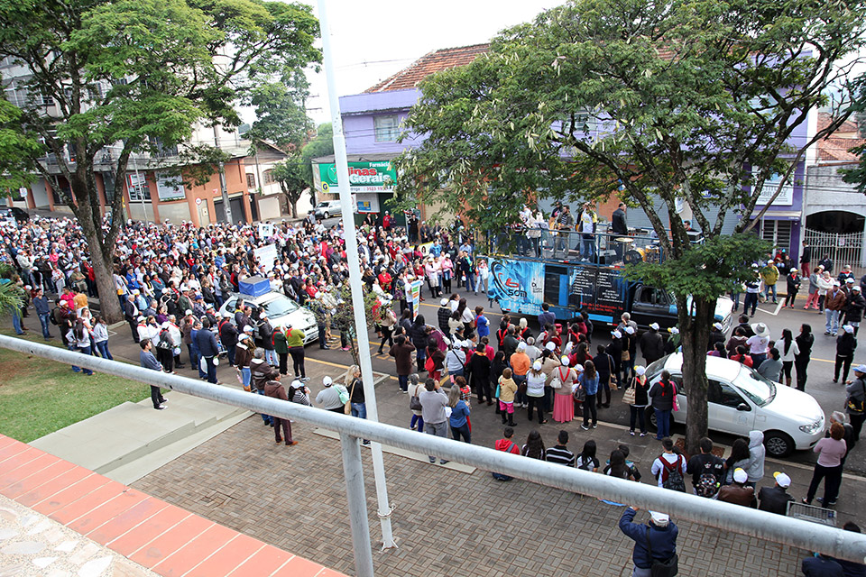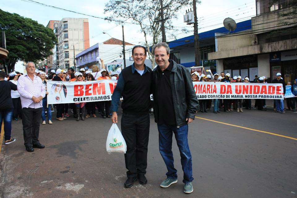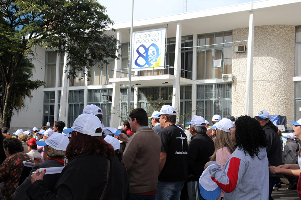 Cornélio Procópio – Representantes de 25 paróquias da Diocese de Cornélio Procópio participaram no último domingo, (Dia10), da 13ª edição da Festa da Unidade. O evento começou na Catedral Cristo Rei, com a recepção às caravanas, seguida de uma passeata pelo centro da cidade até o Monumento “Cristo Rei”, onde foi celebrada uma Missa em Ação de Graças pela Unidade de toda a Diocese pelo Bispo Dom Manoel Francisco e pelo Bispo Emérito Dom Getúlio Guimarães Teixeira. Segundo o Padre José Sérgio Juventino, um dos organizadores, a Festa da Unidade teve três objetivos: “Incentivar as pastorais, organismos, serviços e movimentos a estreitarem os laços de cooperação mútua, aprofundar o congraçamento das vinte e cinco paróquias e dar um testemunho púbico de nossa fé e da busca de unidade desejada e pedida por Jesus”, disse. Conforme o Padre Zezinho, os representantes das 25 Paróquias da Diocese participaram com muito entusiasmo da Festa da Unidade, demonstrando sua fé e seu compromisso com os fiéis. O prefeito Amin Hannouche acompanhou parte da caminhada e parabenizou a Diocese de Cornélio Procópio pela demonstração de Unidade de todos os seus movimentos. “Nossa Diocese demonstrou união e participação. Este incentivo é muito importante para sociedade e para milhares de pessoas que participam ou estão ligados aos movimentos importantes desenvolvidos pela Igreja Católica em nossa região”, disse o prefeito. (Comunicação/Prefeitura)
