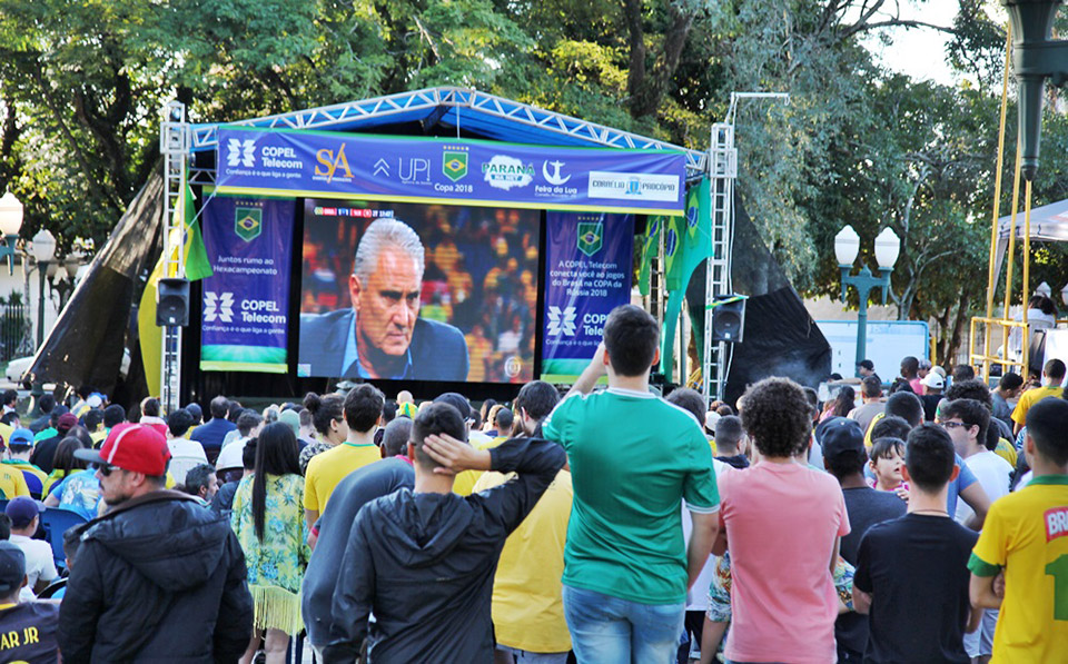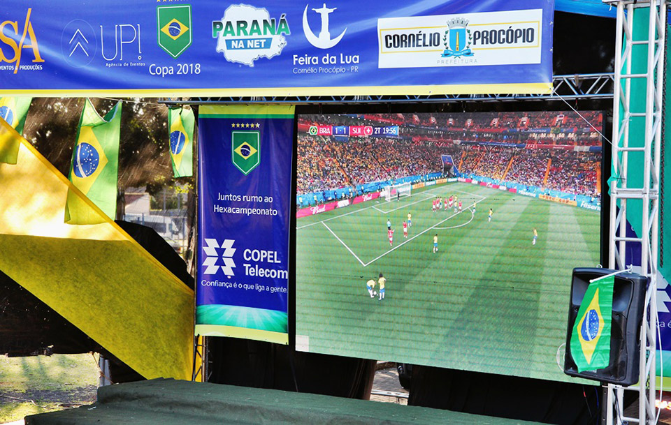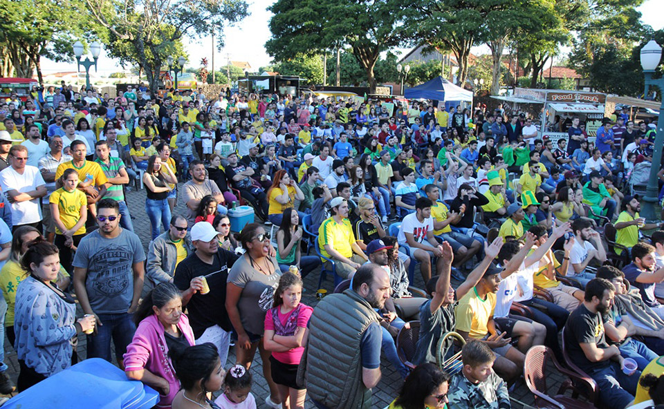 Cornélio Procópio - Torcedores procopenses deixaram suas casas, bares e lanchonetes para assistir a primeira partida do Brasil na copa da Rússia, na Praça Botafogo, centro de Cornélio Procópio. A iniciativa teve o apoio da Secretaria de Cultura da Prefeitura do Município e atraiu centenas de pessoas no centro da praça onde foi instalado um super telão de Lede. Parceria com a Feira da Lua e do empresário Denis Douglas, agradou os presentes. Segundo o Secretário de Cultura, Rafael Hadad, a movimentação começou no final da manhã deste domingo com o atendimento da Feira da Lua. A prefeitura reforçou o número de cadeiras e muita gente pode assistir à partida confortavelmente. "Infelizmente a primeira participação brasileira na Copa do Mundo na Rússia terminou empatada, mas a presença de cerca mil pessoas no local onde foi instalado o telão superou as expectativas", disse o Secretário Rafael Hadad, observando que o prefeito Amin Hannouche aprovou este projeto, permitindo que as pessoas pudessem assistir aos jogos da Copa neste espaço que é público e tradicional. "O prefeito Amin quer que todos os jogos do Brasil nesta Copa, sejam mostrados no telão de Lede na Praça Botafogo. Na próxima partida, entre o Brasil e a Costa Rica, às 9 da manhã da próxima sexta-feira, dia 22, o telão será instalado novamente, concluiu Rafael Hadad. (Comunicação/Prefeitura)