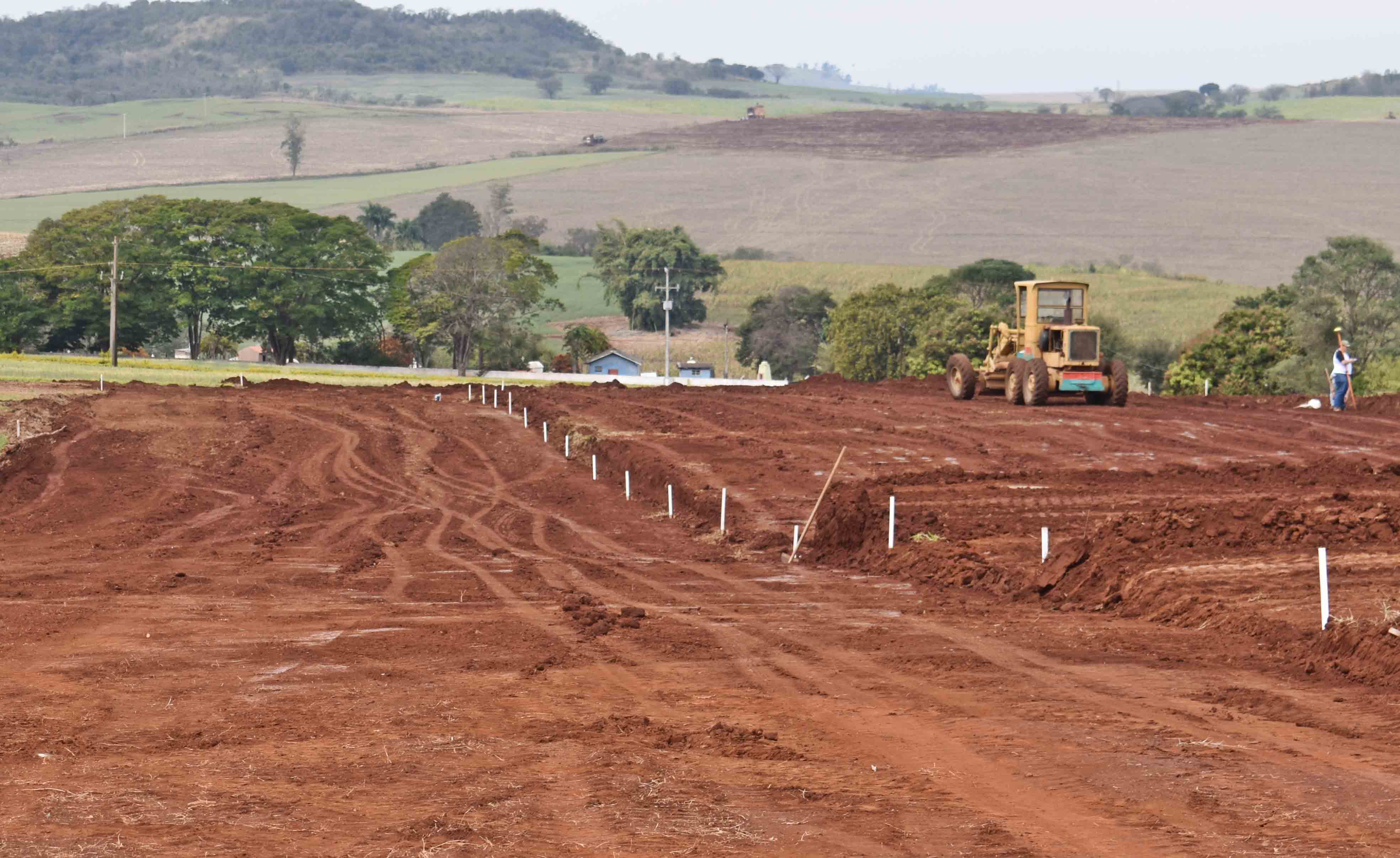 Serviços de terraplanagem estão sendo executados para a construção das primeira casas populares no distrito desde 1990