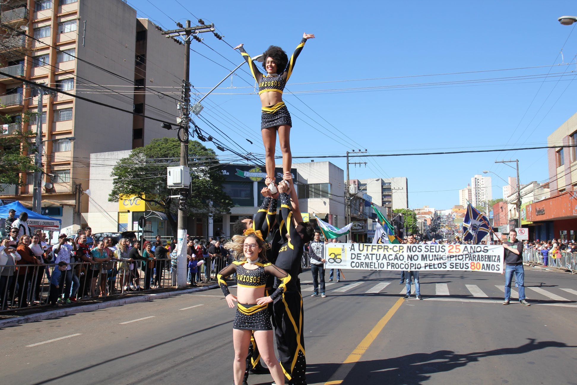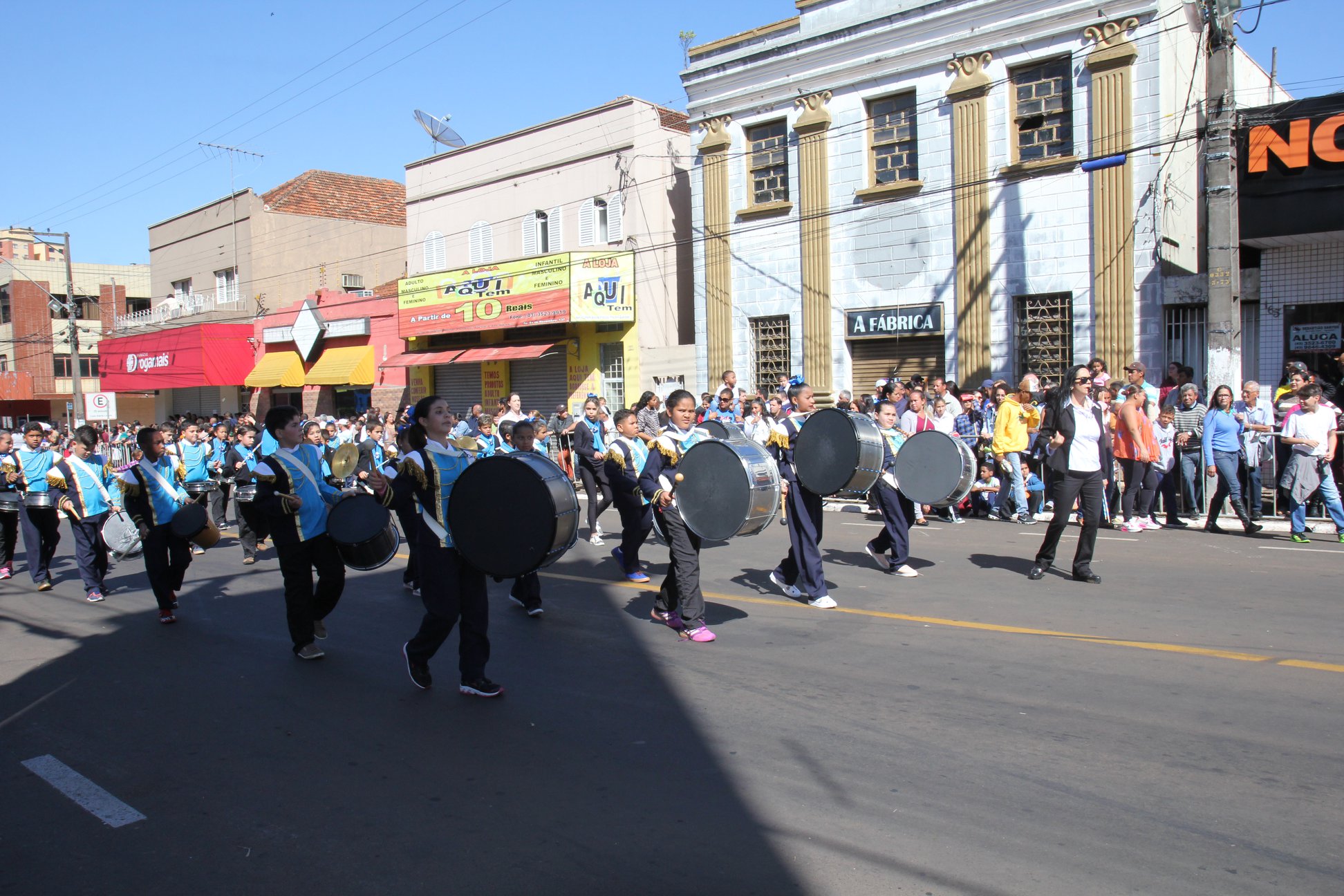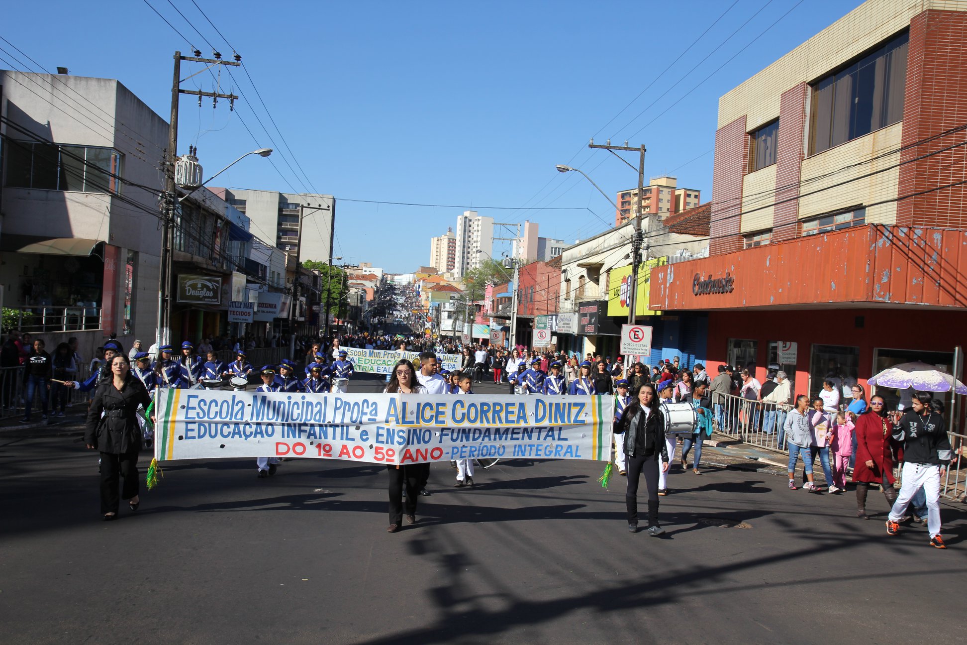Cornélio Procópio – Um misto de descontentamento com a crise econômica e política, mas esperança num futuro melhor por meio da reverência ao país. O discurso da vontade de resgatar o amor pelo Brasil foi quase unanimidade entre as cerca de 20 mil pessoas que estiveram na Avenida XV de Novembro na manhã desta sexta-feira (dia 7), para acompanhar o desfile cívico-militar dos 196 anos da Proclamação da Independência e dos 80 anos de Cornélio Procópio. Em um percurso de 1,5 quilômetros, desfilaram escolas municipais, particulares e estaduais, instituições de ensino superior, organizações da sociedade civil, bandas e fanfarras e representações da Policia Militar, Bombeiro, Bombeiro Mirim, Banda Santa Cecília e os Atiradores do Tiro de guerra 05.002. O prefeito Amin Hannouche, que estava acompanhado de autoridades militares, civis e assessores era um dos mais empolgados com a grande participação popular no desfile deste ano. Ele e a vice-prefeita Angélica Olchaneski e o presidente da Câmara de Vereadores, Helvécio Alves Badaró assistiram o desfile no palanque oficial da Praça Brasil. Ele destacou que o Brasil é muito maior do que tudo isto que está ocorrendo de errado. “O 7 de setembro representa aquilo que temos de mais sagrado como nação. Neste dia foi dado o grito da independência do nosso país. De forma que, independente da conjuntura, de qualquer tipo de situação, estamos aqui hoje para congraçarmos e festejarmos esse aniversário”, disse o prefeito observando que “Esse desfile é a prova viva de que a população está presente e prestigiando nossa cidade e nossa Pátria”, concluiu. O público começou a encher avenida por onde passou o desfile por volta das 8h30, mais cedo do que em anos anteriores. Professores, crianças e adolescentes com uniformes, instrumentos musicais, passos marcados e homenagens, contribuíram para manter vivas as comemorações do sete de setembro deste ano. No Distrito de Congonhas, o desfile cívico também foi realizado na manhã desta sexta-feira. De acordo com a Secretária de Educação, Maria Lídia Pimenta, as comemorações deste ano superaram a expectativa da Comissão Organizadora e da população. “No dia primeiro de setembro iniciamos as comemorações da Independência do Brasil e seus 196 anos de histórias e dos 80 anos de Cornélio Procópio e percebemos que a população gostou da programação. Durante a semana e nesta sexta-feira, pudemos notar todo o brilhantismo de nossas escolas municipais, particulares e estaduais, e todas as representações educacionais, a sociedade civil organizada e a população, que nos motivou a manter esta tradição nos próximos anos”, concluiu a Secretária Municipal de Educação, Maria Lídia Funari Pimenta. (Comunicação – Prefeitura)