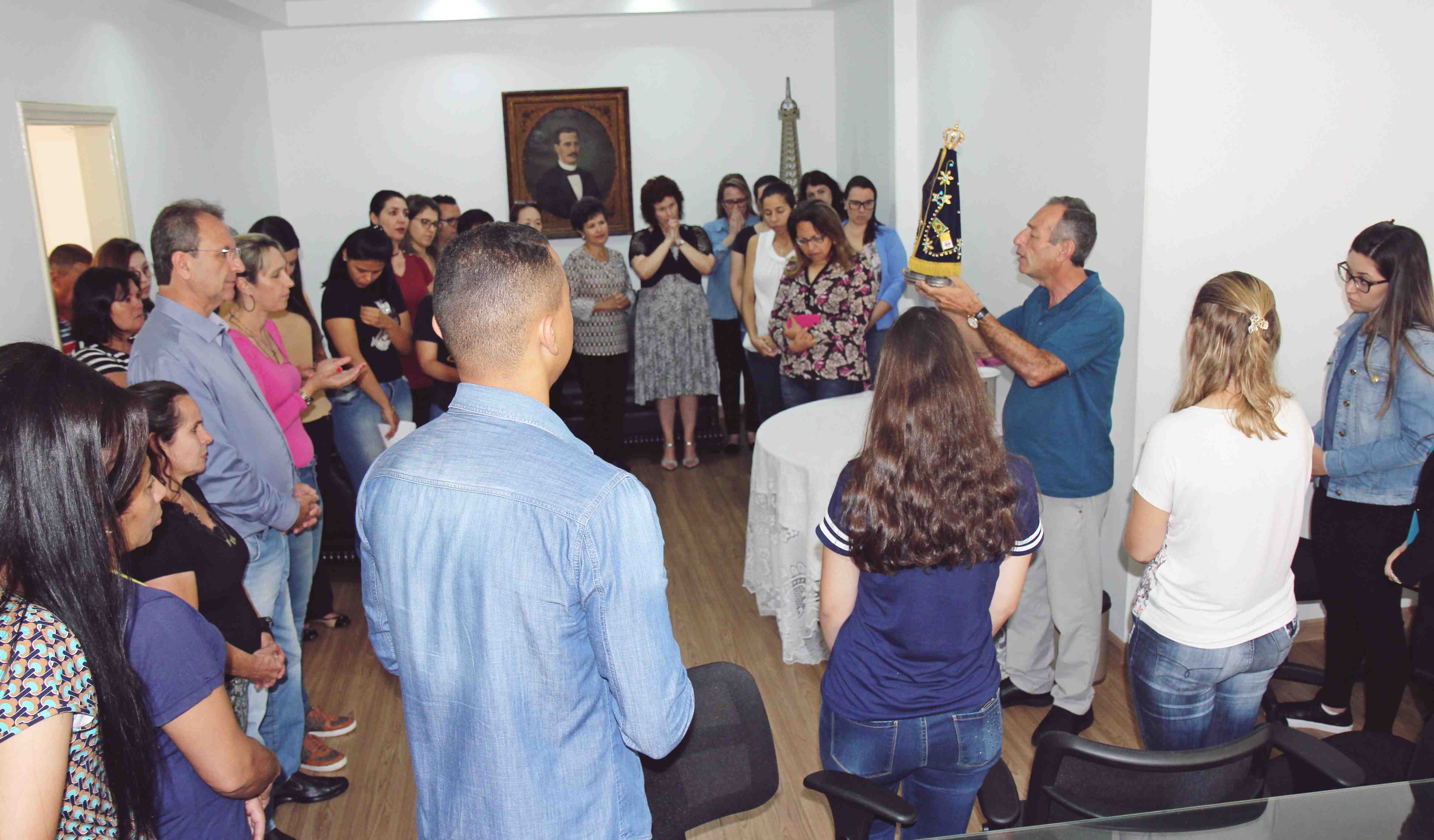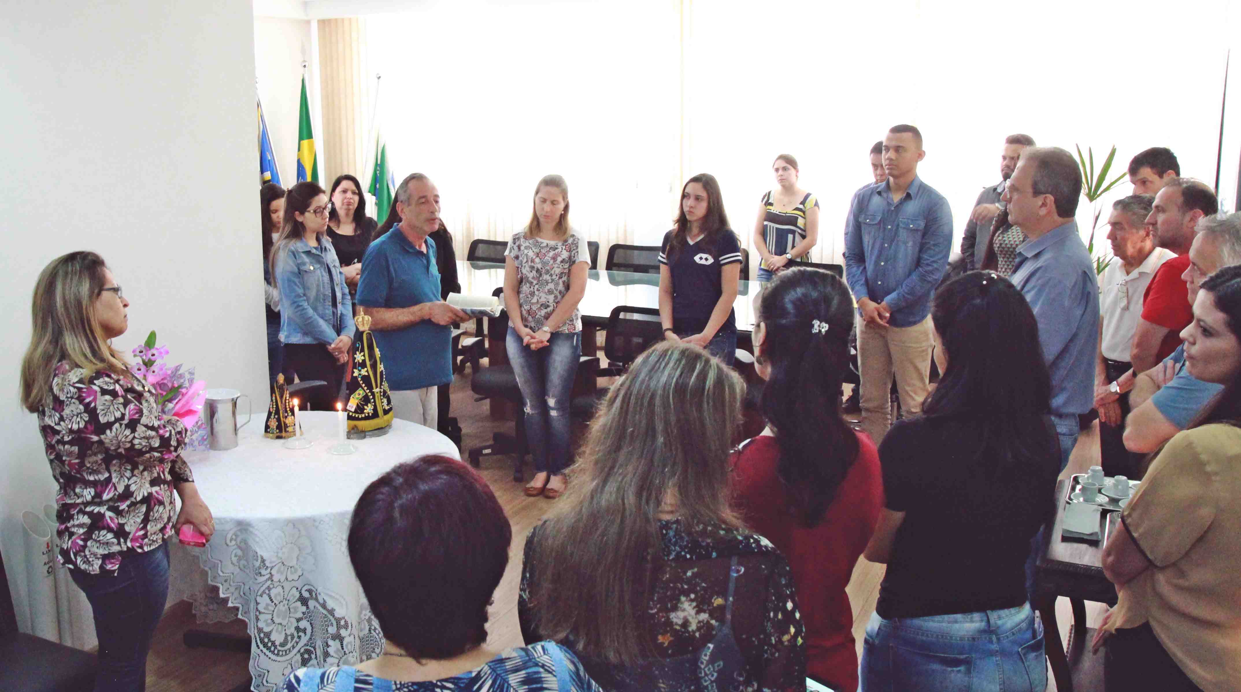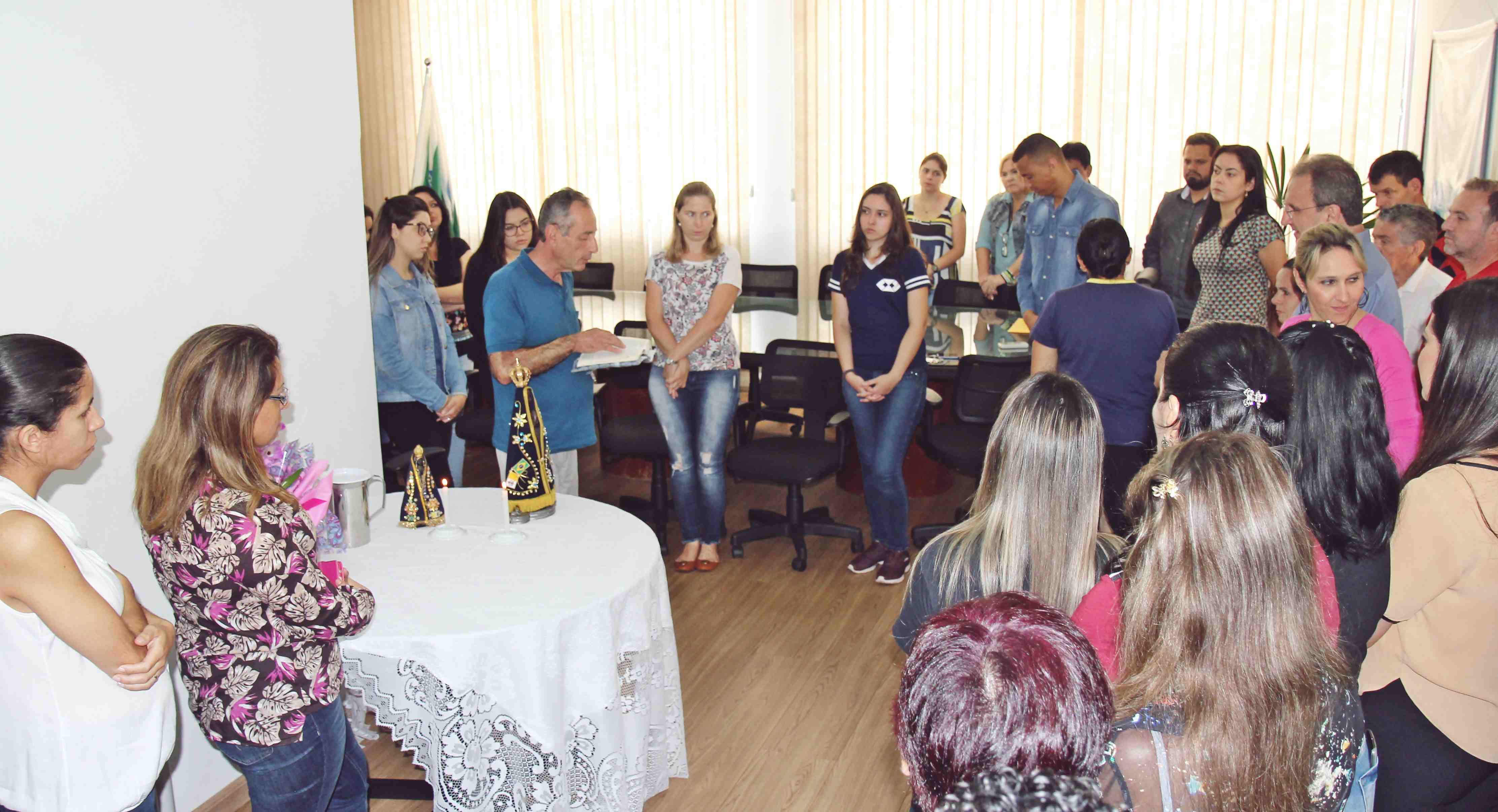 Cornélio Procópio - A réplica da imagem original de Nossa Senhora Aparecida, Padroeira do Brasil foi apresentada aos funcionários da Prefeitura do município de Cornélio Procópio no início desta semana. O prefeito Amin Hannouche e a vice-prefeita Angélica Olchaneski de Mello receberam a imagem conduzida pelo Pároco da Catedral Cristo Rei, Padre Orisvaldo José Calandro na sala de reuniões do gabinete oficial. Na oportunidade, o vigário contou a história da aparição da imagem a pescadores no rio Paraíba do Sul, no estado de São Paulo, em 1717. Considerada um dos principais símbolos da religião católica no Brasil, a Santa é reconhecida como milagrosa por milhares de pessoas que visitam a sua Basílica em Aparecida (SP) todos os anos. O prefeito Amin agradeceu a visita do padre com Imagem de Nossa Senhora Aparecida e acompanhou as orações que foram dedicadas à Santa. Nesta sexta-feira, dia 12 é feriado nacional em homenagem à padroeira do Brasil, Nossa Senhora Aparecida.