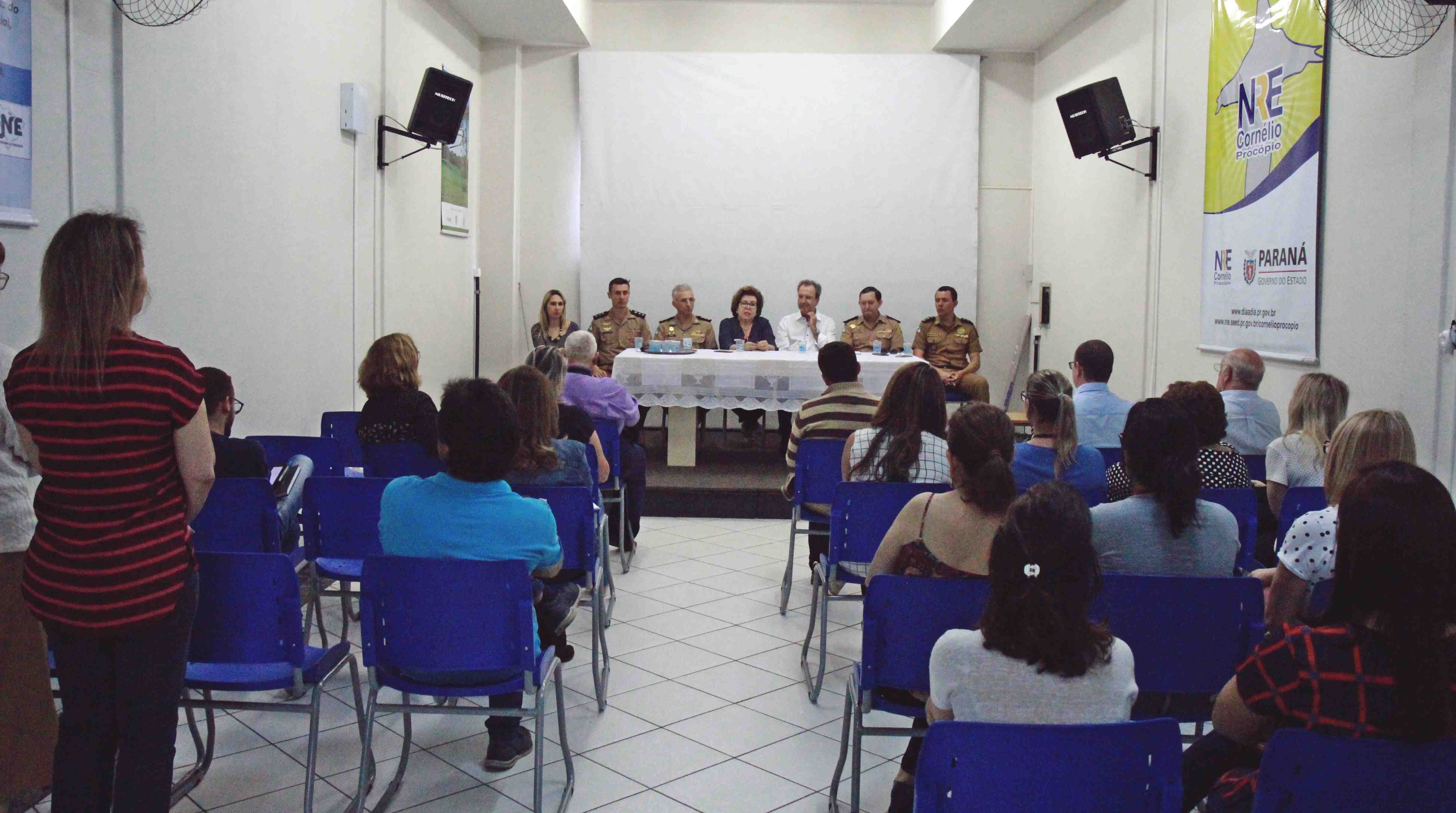 Cornélio Procópio - O prefeito Amin Hannouche reuniu-se esta semana na sede do Núcleo Regional de Educação de Cornélio Procópio, onde recebeu a imprensa local e autoridades para comunicar oficialmente o edital do processo de seleção para ingressar no Colégio da Polícia Militar. O prefeito destacou a importância do Colégio para o município, que mesmo sendo de médio porte, estará recebendo a unidade. “A nova unidade será instalada nas dependências do atual Colégio Estadual Alberto Carazzai, sendo realizado mais um grande sonho para toda a comunidade, através da governadora Cida Borghetti que atendeu nosso pedido, e tenho certeza que essa conquista vai mudar a vida dos nossos jovens”, agradeceu Amin. A chefe do Núcleo Regional da Secretaria Estadual de Educação de Cornélio Procópio, Maria Aparecida Ribeiro, afirmou que os alunos que já estudam no colégio e decidirem permanecer, serão mantidos, sem necessidade de fazer o processo de seleção. “O processo seletivo é apenas para os novos alunos que devem ingressar na unidade em 2019. No total serão 120 alunos ingressantes no ensino fundamental e médio, fora os que já permanecem no colégio”, explicou. Ela também destacou que as inscrições são feitas totalmente online, e que os pais precisam se atentar ao edital para realizar todo o processo. Para o Coronel Luiz Roberto Costa, do Comando Regional da Policia Militar de Londrina, essa unidade que está sendo instalada em Cornélio é um grande privilégio. “É um colégio de excelência e isso para a cidade e região é de grande importância. E com um ensino baseado na disciplina e hierarquia são os diferenciais para os bons índices obtidos pelos estudantes”, destacou o Coronel. A direção do Colégio Militar ficará na responsabilidade do Major Edvaldo Isidoro Vieira. Ele informou que a escola passará por reformas estruturais, como pinturas e adequação. Além disso, os alunos deverão seguir as regras que fazem parte da formação militar, preparando crianças e jovens para o futuro. “Oferecendo vasta biblioteca, laboratórios de informática com tecnologia de ponta, quadra externa, laboratórios de ciências entre muitas outras disciplinas, além das participações em solenidades cívicas e militares, que proporcionam o desenvolvimento do civismo”, declarou o major. Também compareceu ao evento a vice-prefeita Angélica Olchaneski de Mello, o Tenente Coronel Hiberaldi Correa de Lima e o 2º Tenente Juarez Saldanha Machado, de Londrina. (Comunicação/Prefeitura)